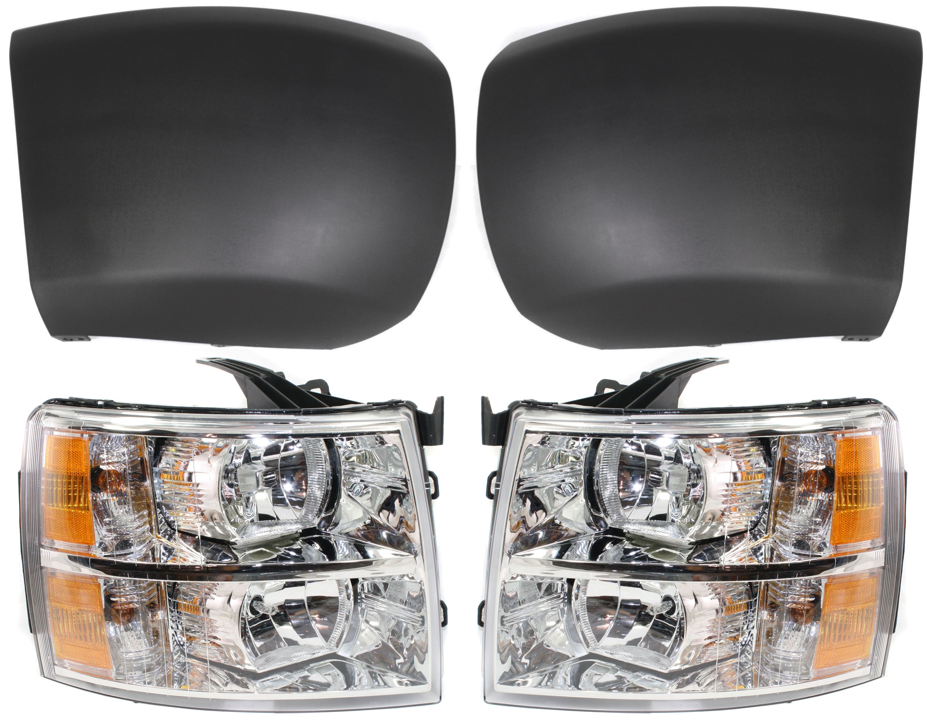 Headlight Assembly for Chevrolet Silverado 1500 (2007-2013) Right (Passenger) & Left (Driver), Halogen, 4-Piece Kit with Bumper Ends, Replacement