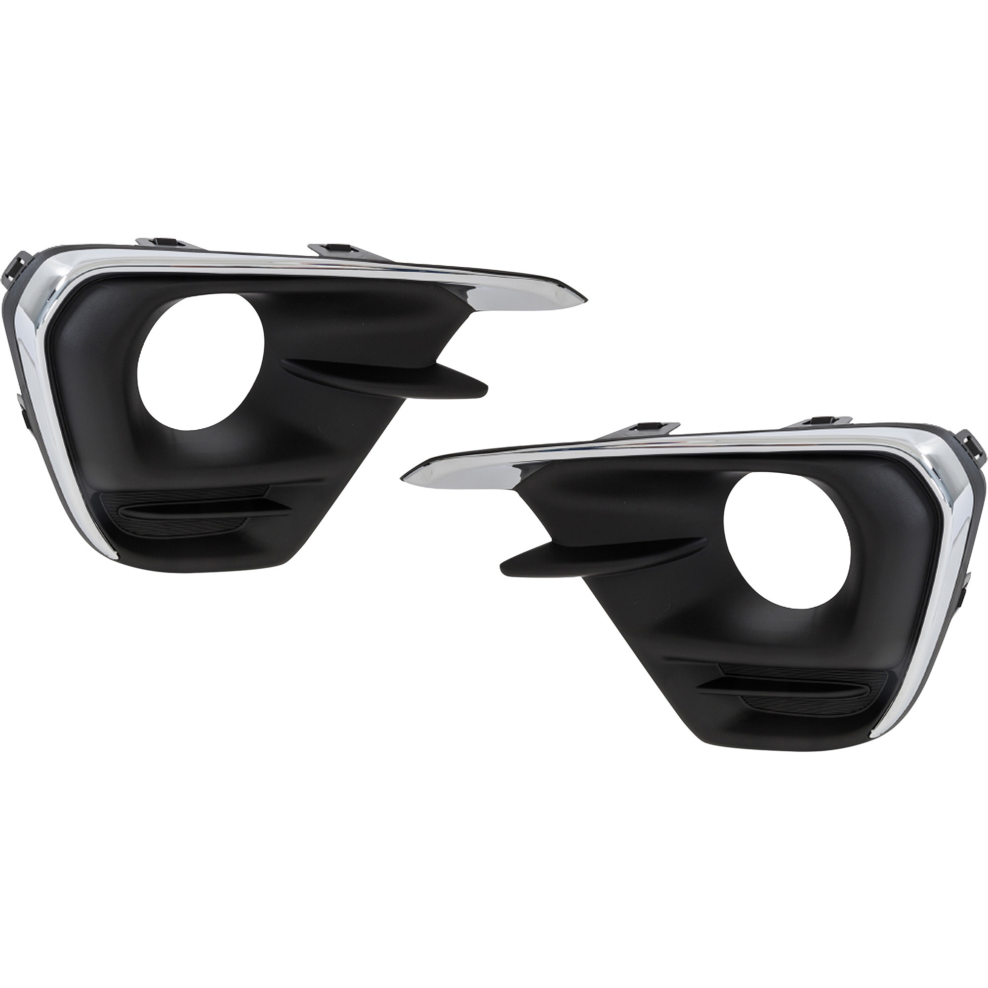 This is a replacement pair/set of fog lamp moldings. The moldings are black.