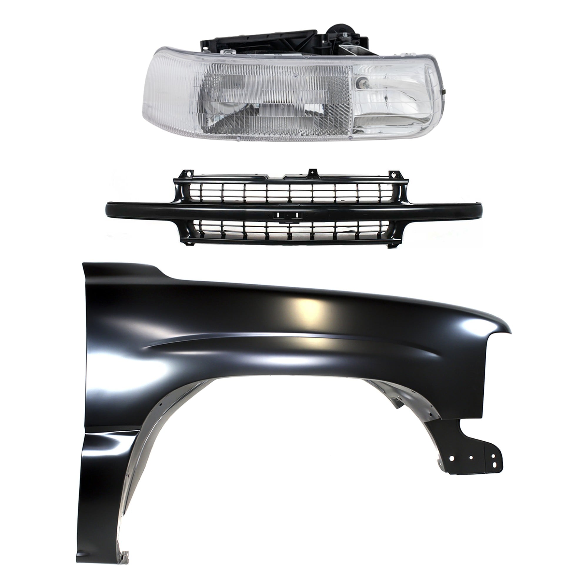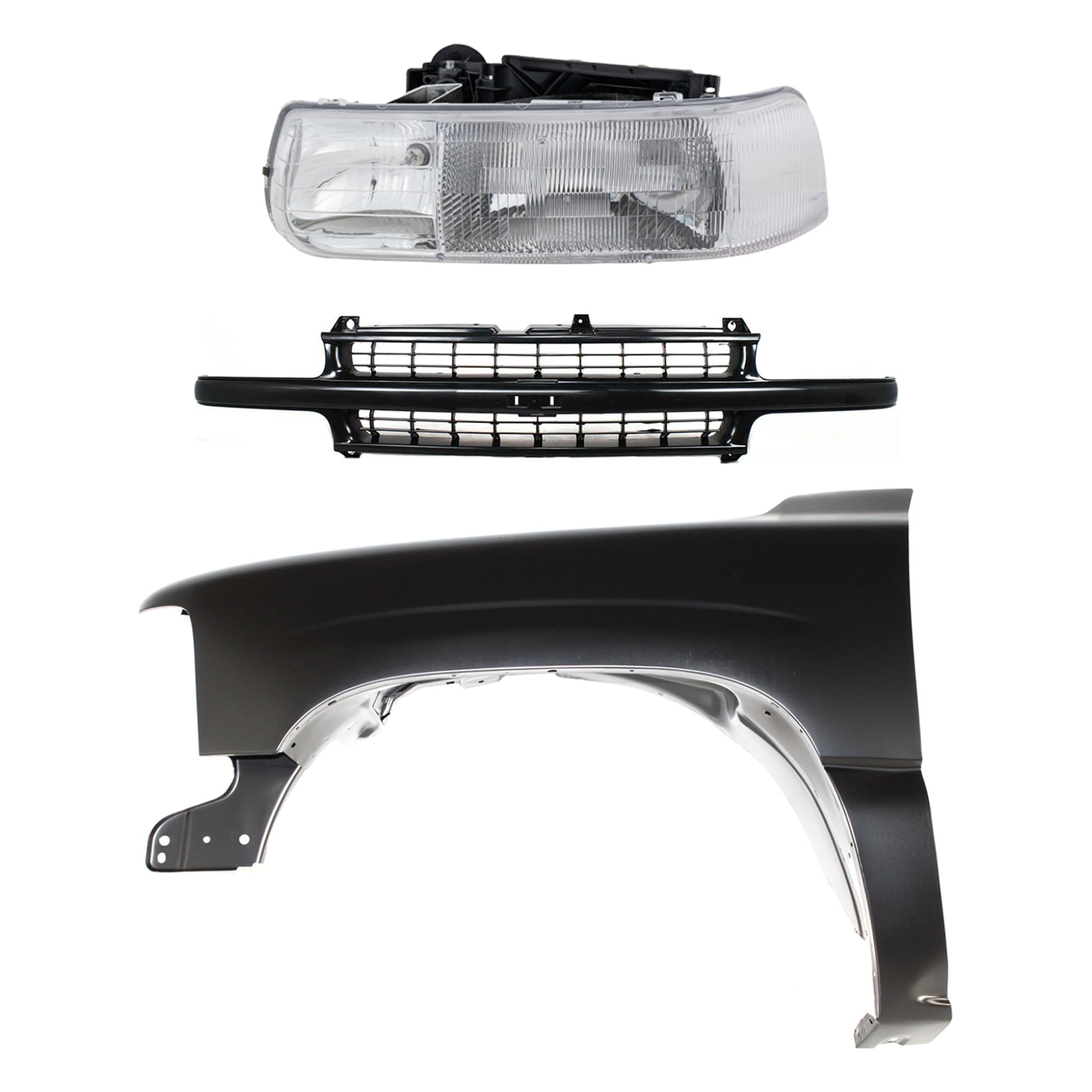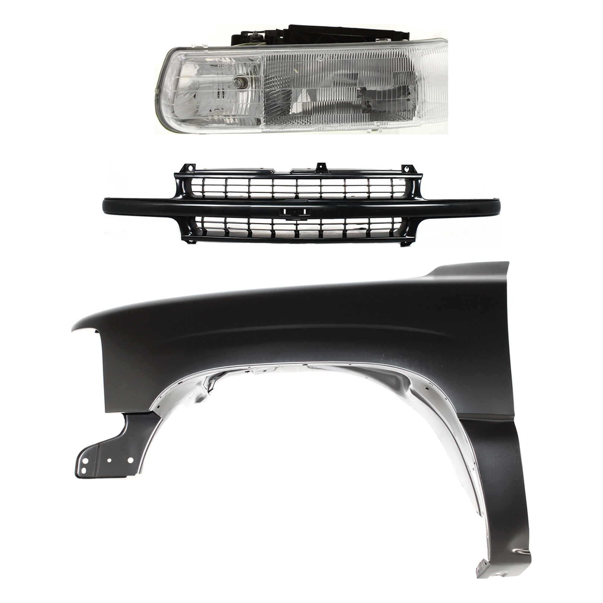 Front Fender Kit for Chevrolet Suburban 1500/2500 (1999-2002), Tahoe (2000-2006), Right (Passenger) Side, 3-Piece Set, Primed (Ready to Paint), with Grille and Headlight - CAPA Replacement