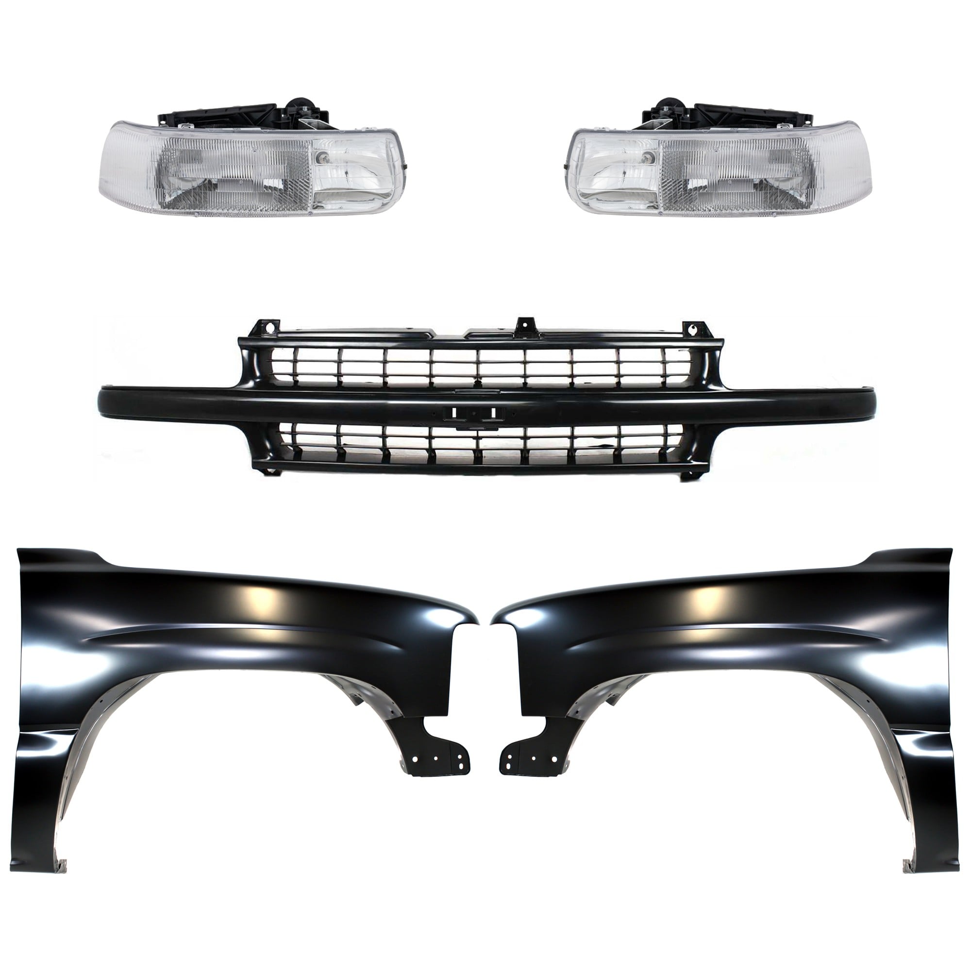 Front Fender Kit for Chevrolet Silverado 1500/Silverado 2500 2000-2006, Right (Passenger) and Left (Driver), Primed (Ready to Paint), 5-Piece with Grille and Headlights, Replacement