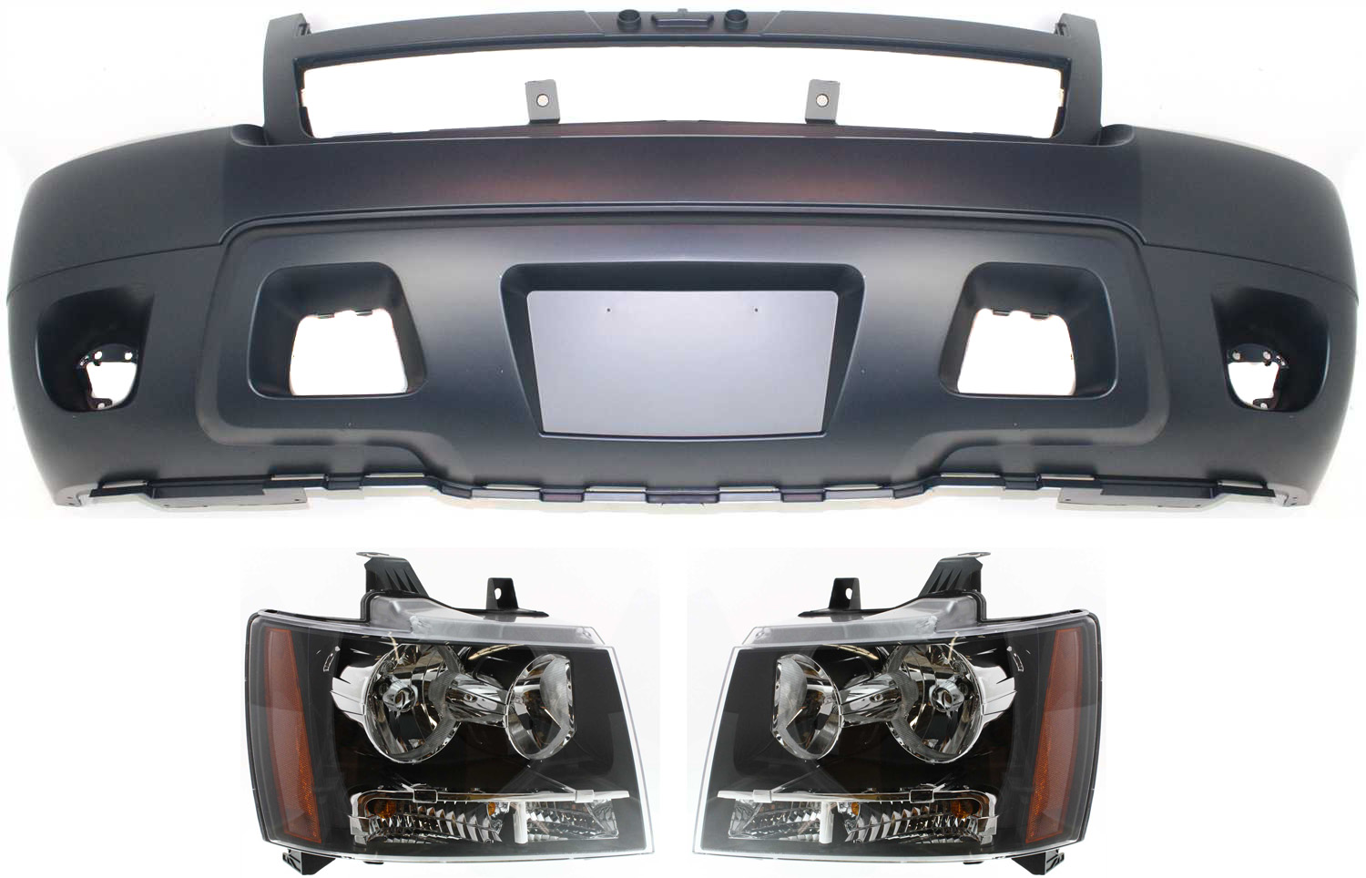 Headlight Assembly for Chevrolet Suburban 1500/Tahoe 2007-2014, Right (Passenger) and Left (Driver), 3-Piece Kit, Halogen, with Bumper Cover, Replacement