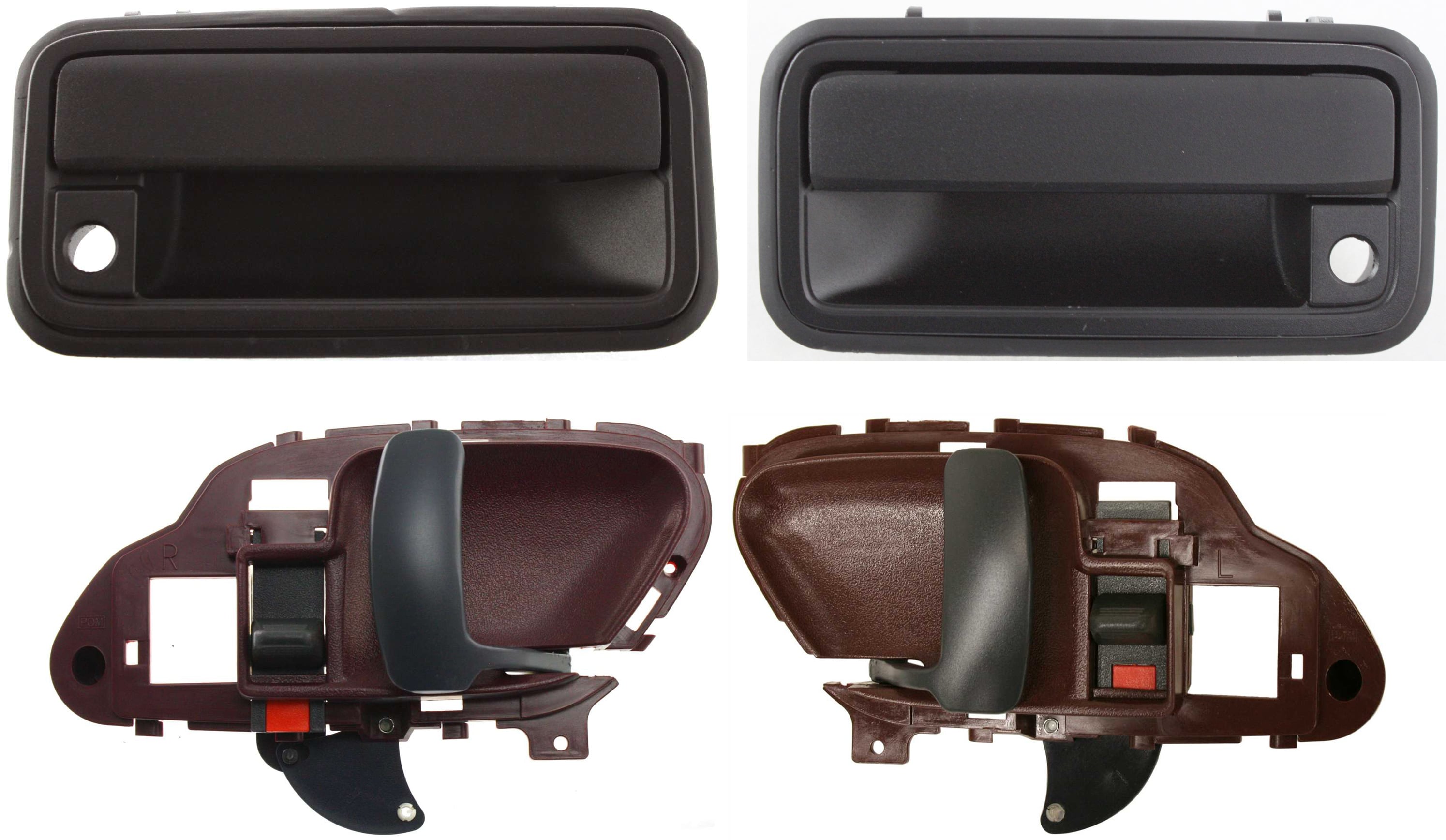Front and Rear Door Handle Pair/Set for 1995-2000 Chevrolet C/K Full Size Pickup, Right (Passenger) and Left (Driver), Inside, Red Housing, Textured Black Lever Replacement