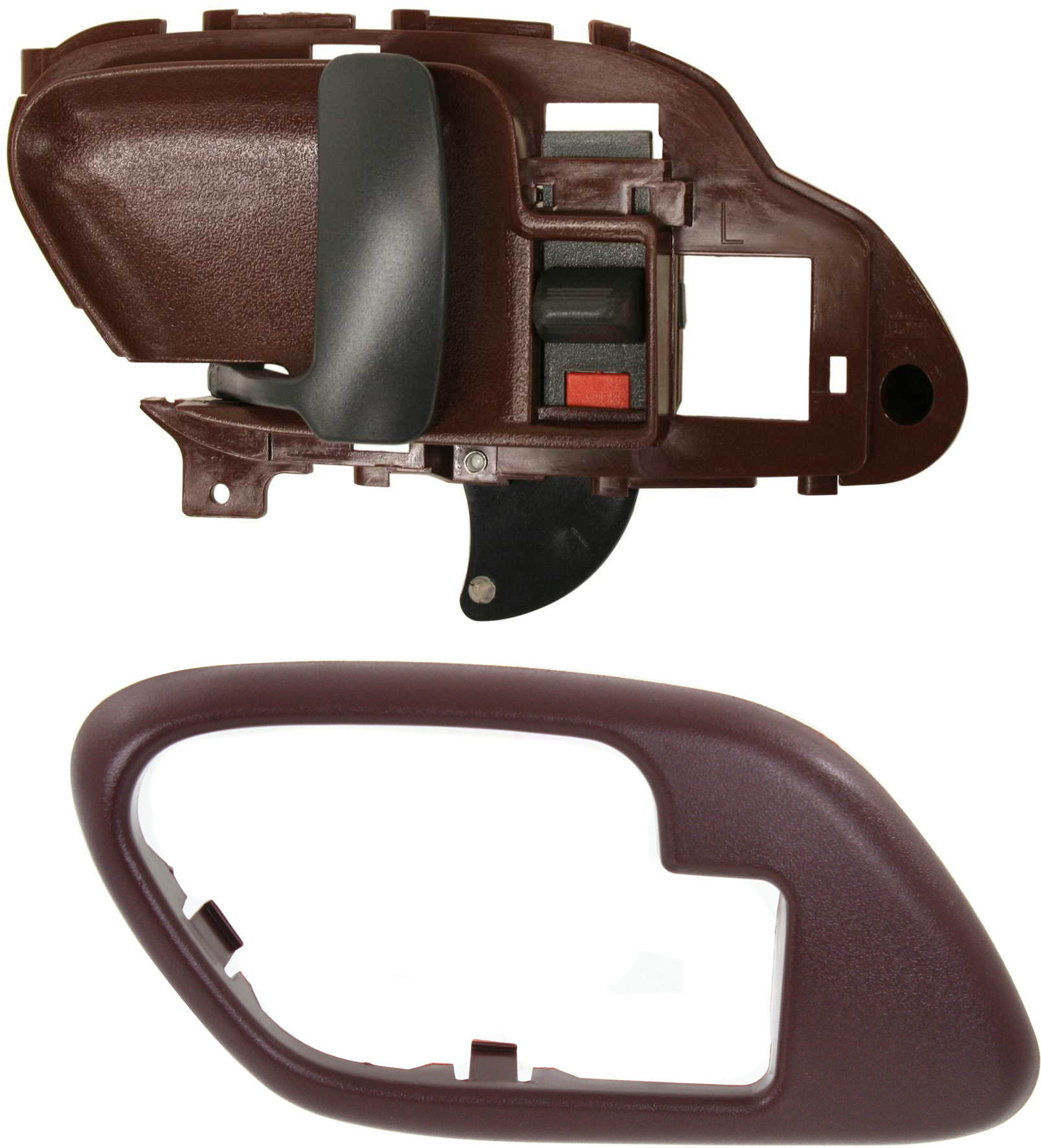 Front or Rear Door Handle Set for 1995-2000 Chevrolet C/K Full Size Pickup, Left (Driver), Inside, Red Plastic, Includes Door Handle Trim, 2-Piece Replacement Kit