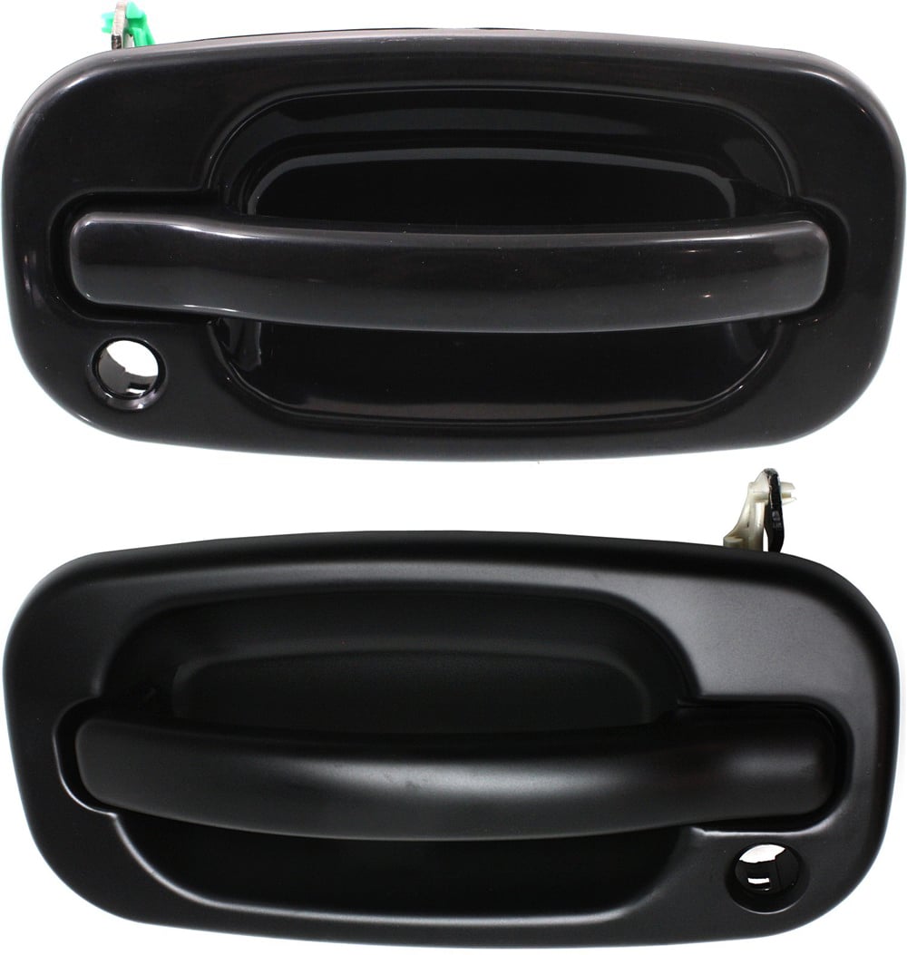 Front Door Handle Pair/Set for 1988-2001 Chevrolet C/K Full Size Pickup, Right (Passenger) and Left (Driver), Outside, Textured Black, Metal Lever with Plastic Bezel, Replacement