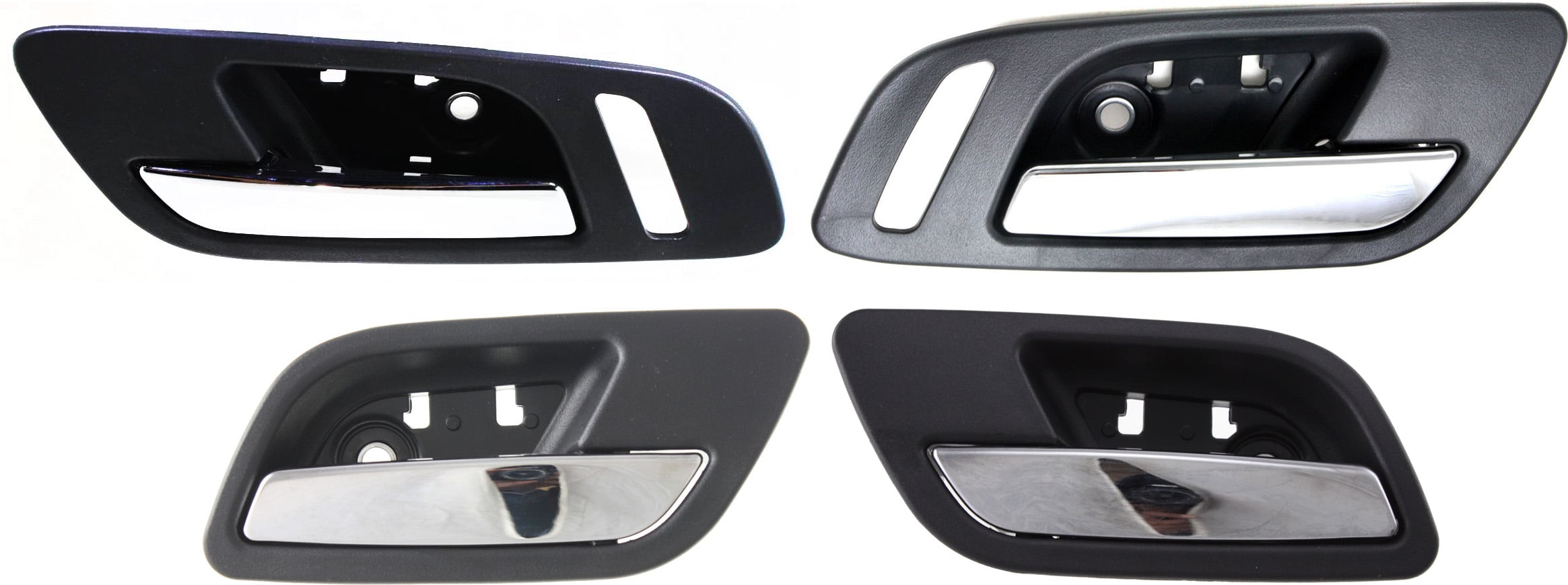 This is a set of 4 interior door handles for the front and rear doors. It features a black bezel and a chrome lever.