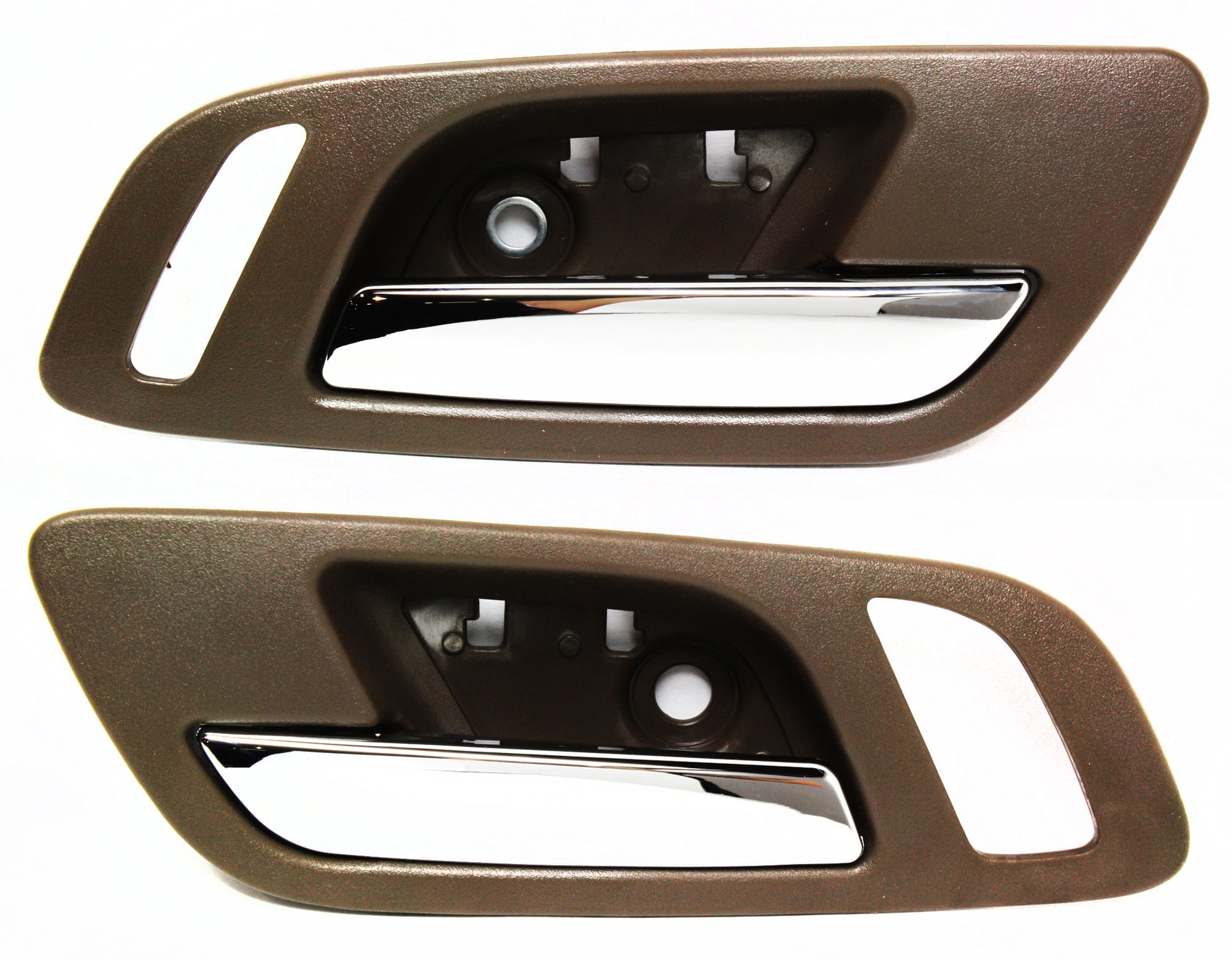 Interior Door Handle Pair/Set for 2007-2014 Chevrolet Sierra/Silverado, Front Right (Passenger) and Left (Driver), Chrome Lever and Brown Housing Replacement