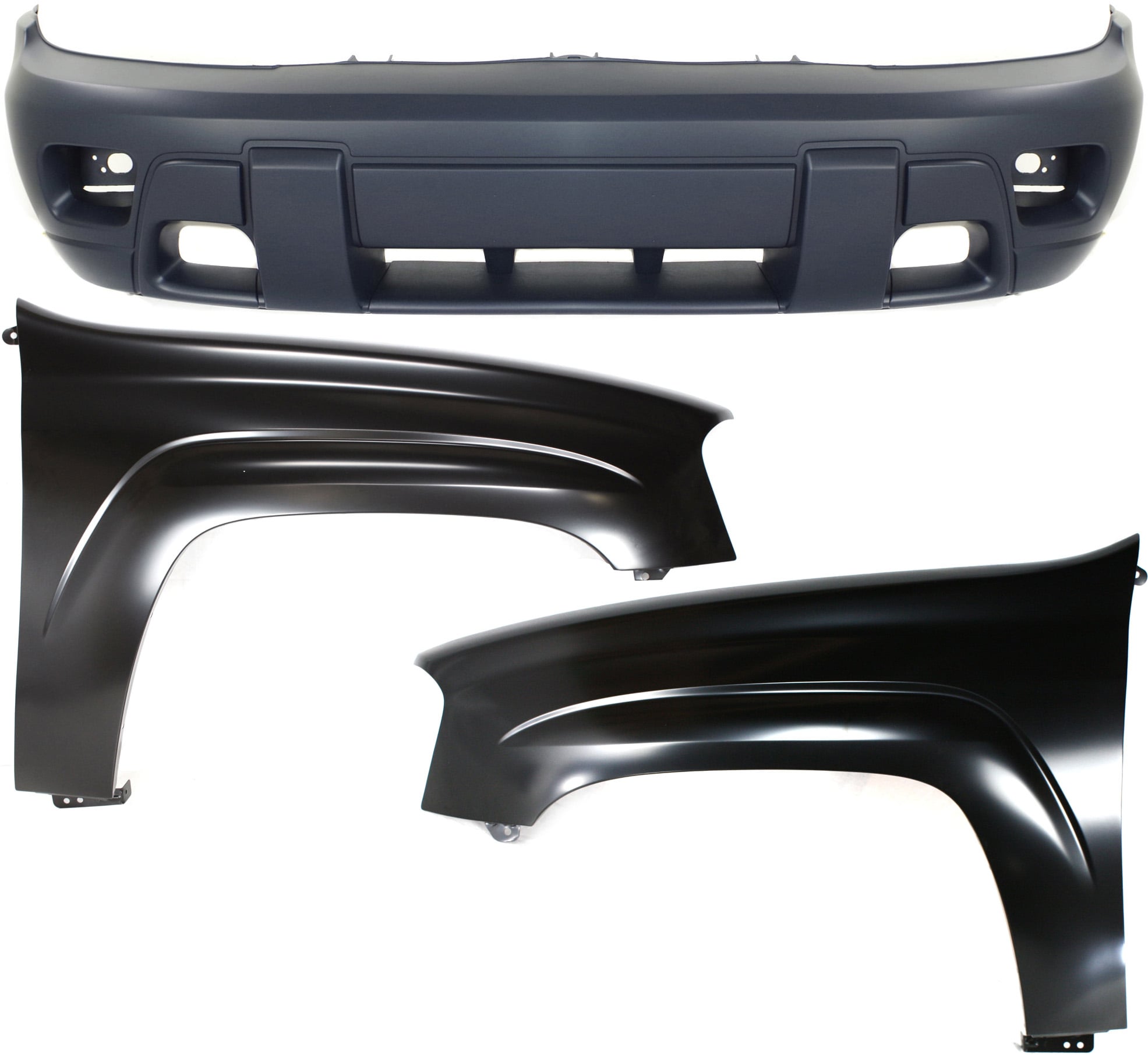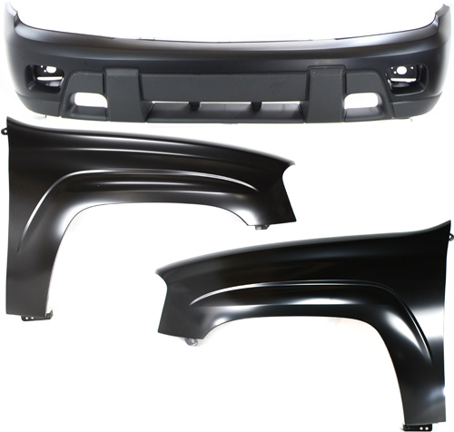 Front Bumper Cover for Chevrolet Trailblazer 2002-2007, 3-Piece Kit with Right (Passenger) and Left (Driver) Fender Replacement