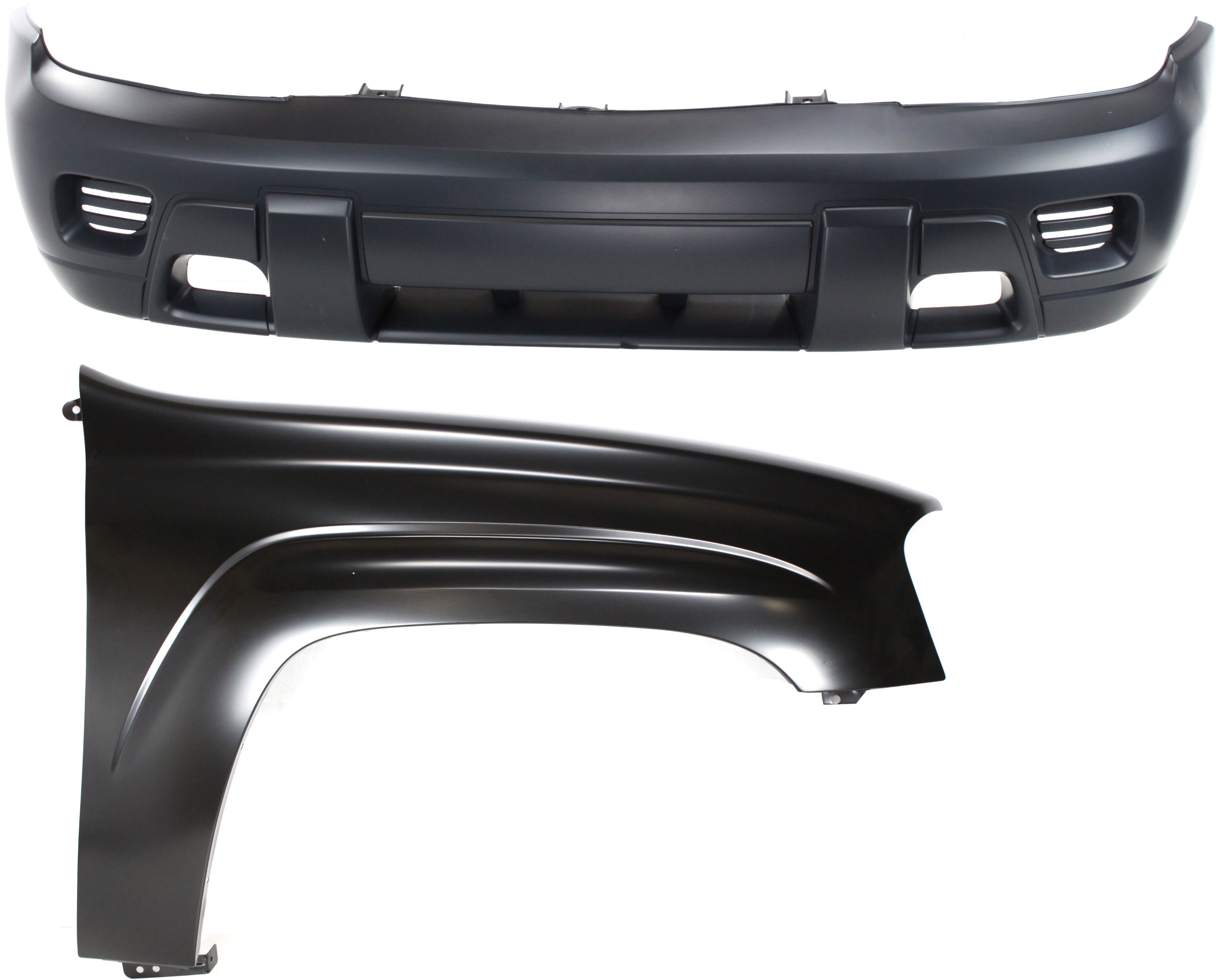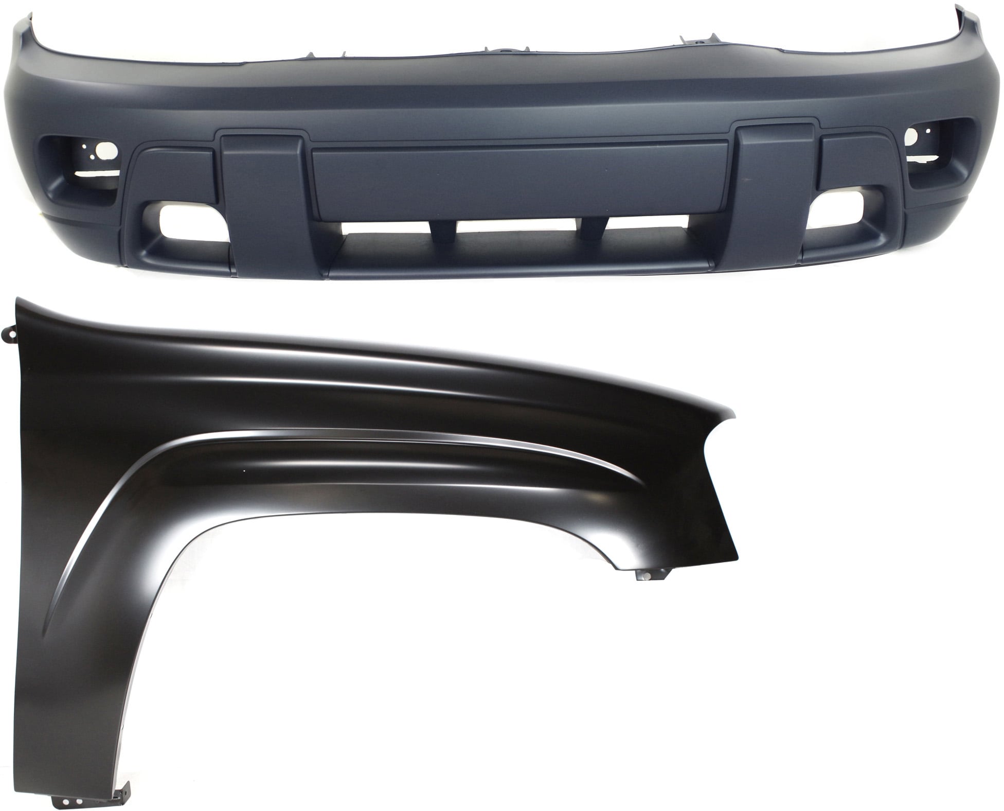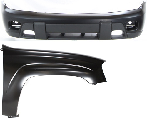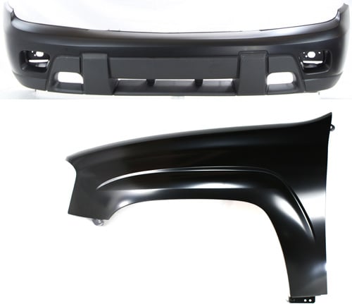 Front Bumper Cover for 2002-2007 Chevrolet Trailblazer, 2-Piece Kit with Right (Passenger) Front Fender Replacement