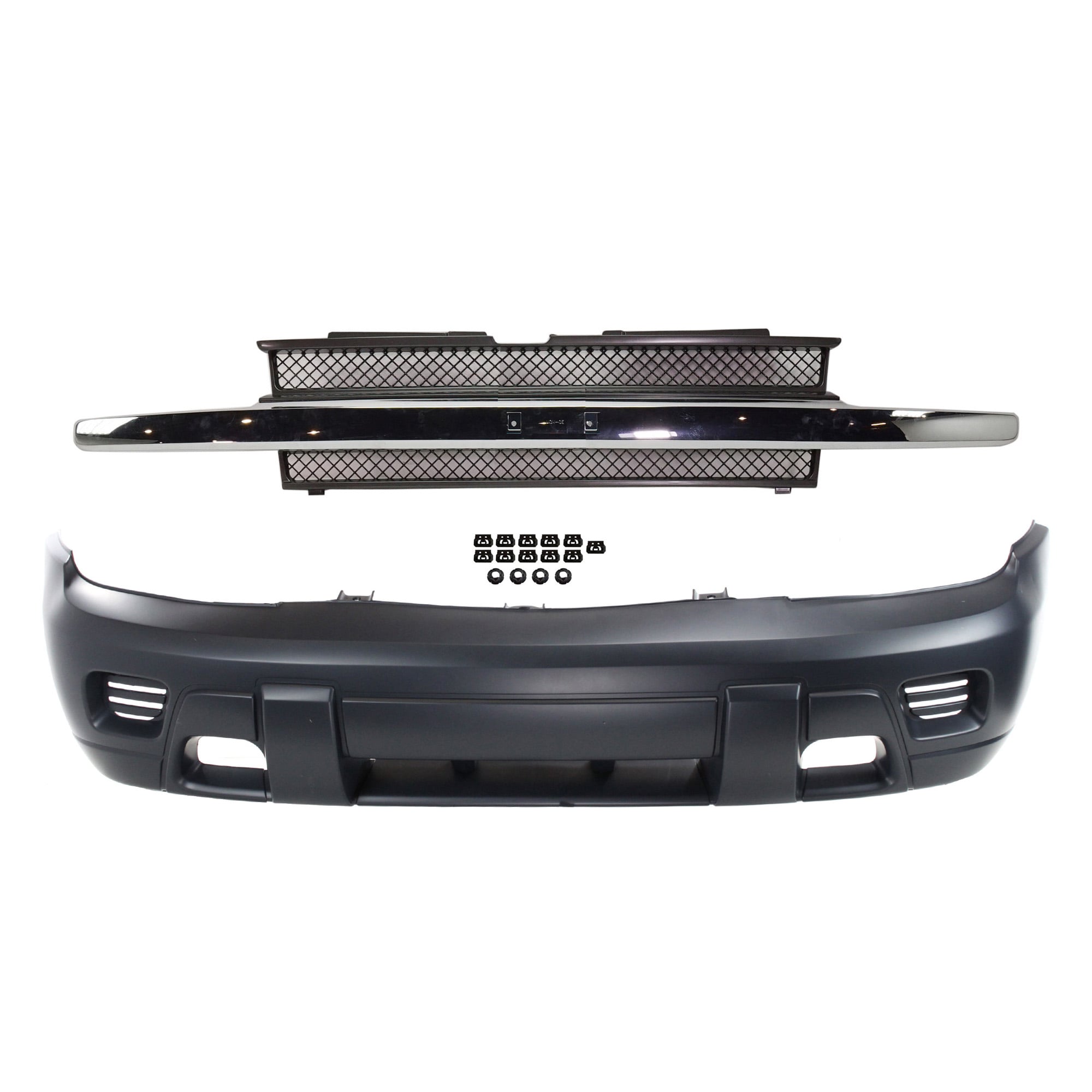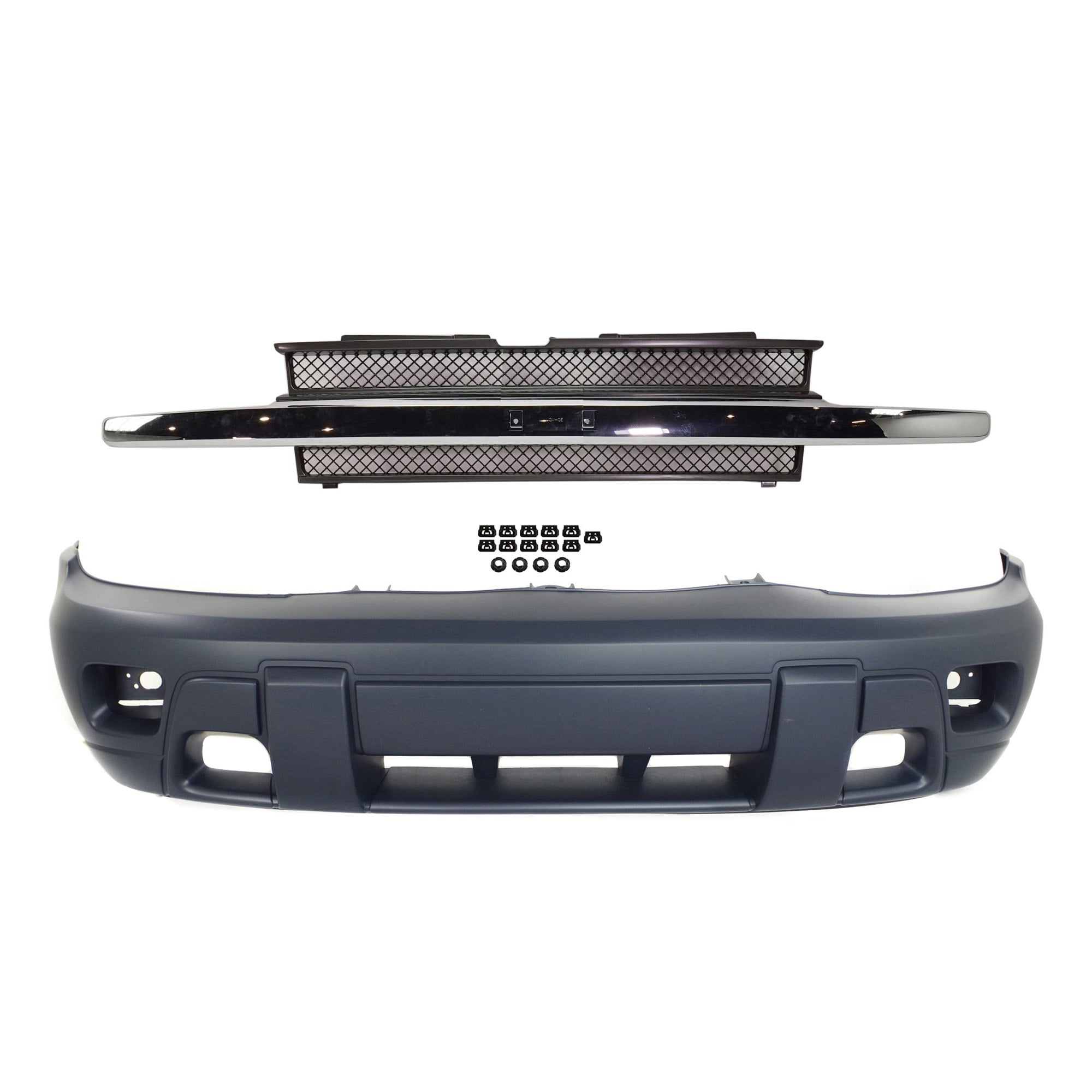 Front Bumper Cover with Grille for Chevrolet Trailblazer 2002-2005, 2-Piece Kit Replacement
