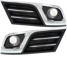Front Fog Light Molding Pair/Set for 2013-2017 Chevrolet Traverse, Right (Passenger) and Left (Driver), Black with Chrome Trim, LT Model Replacement