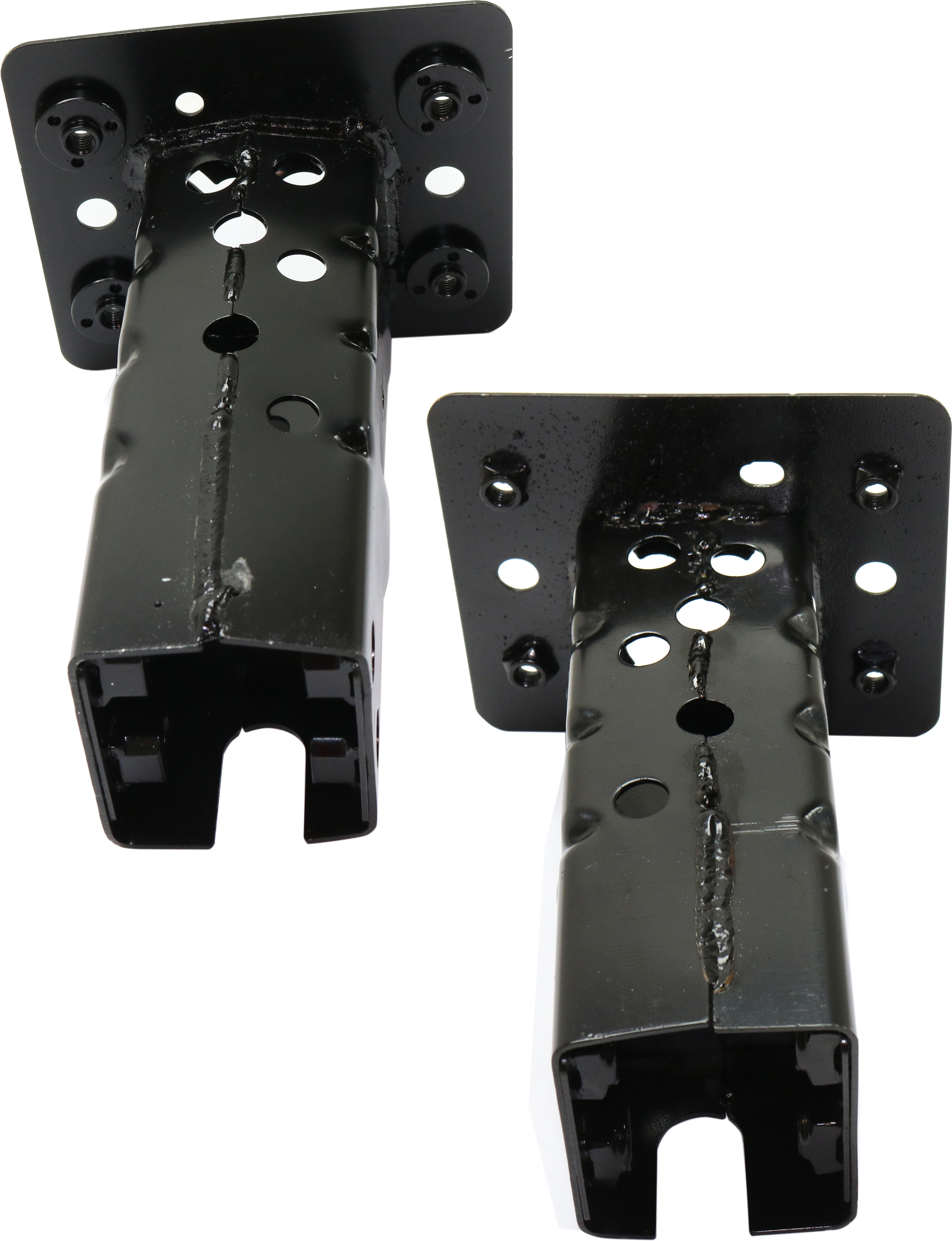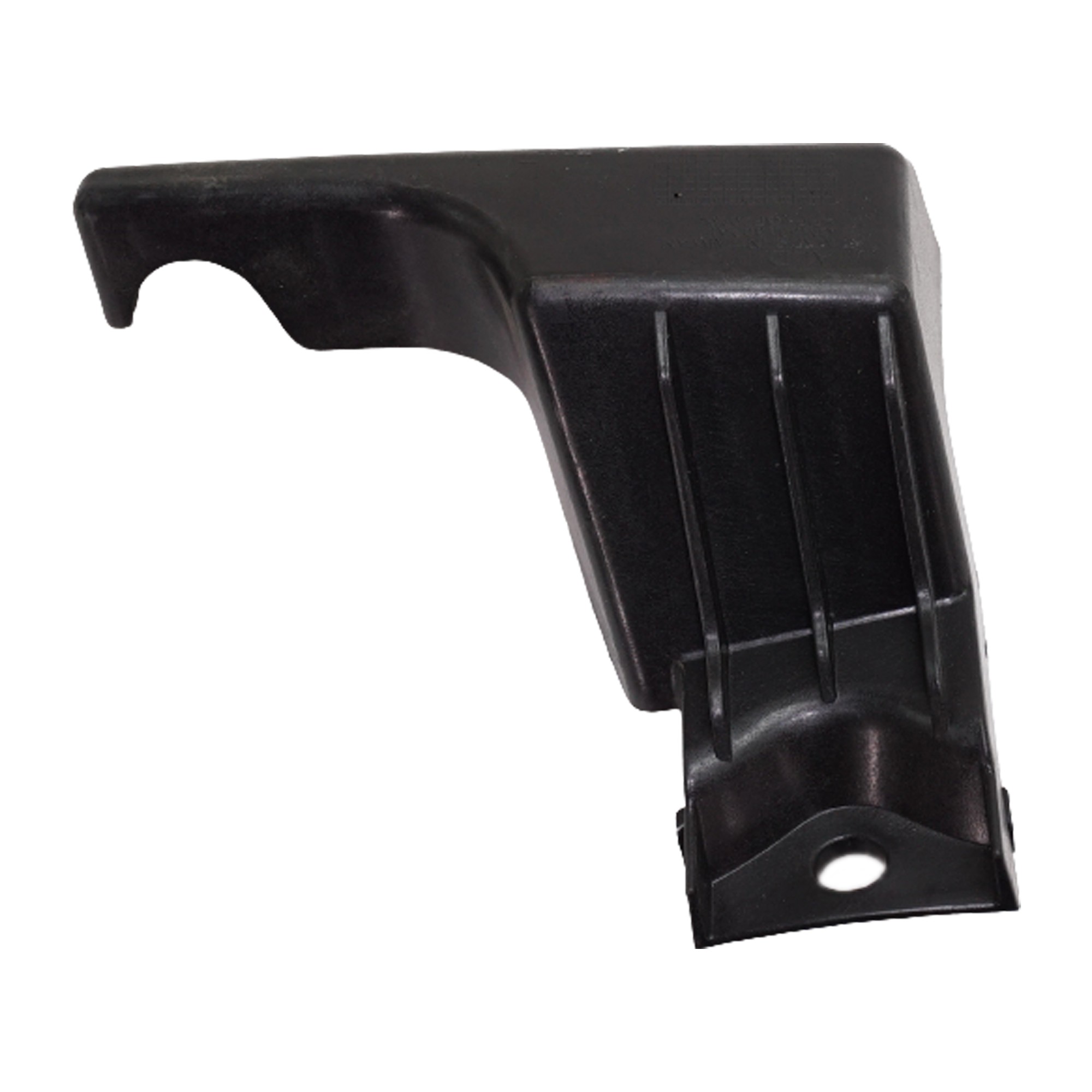 Outer bumper mounting bracket, steel rail end.