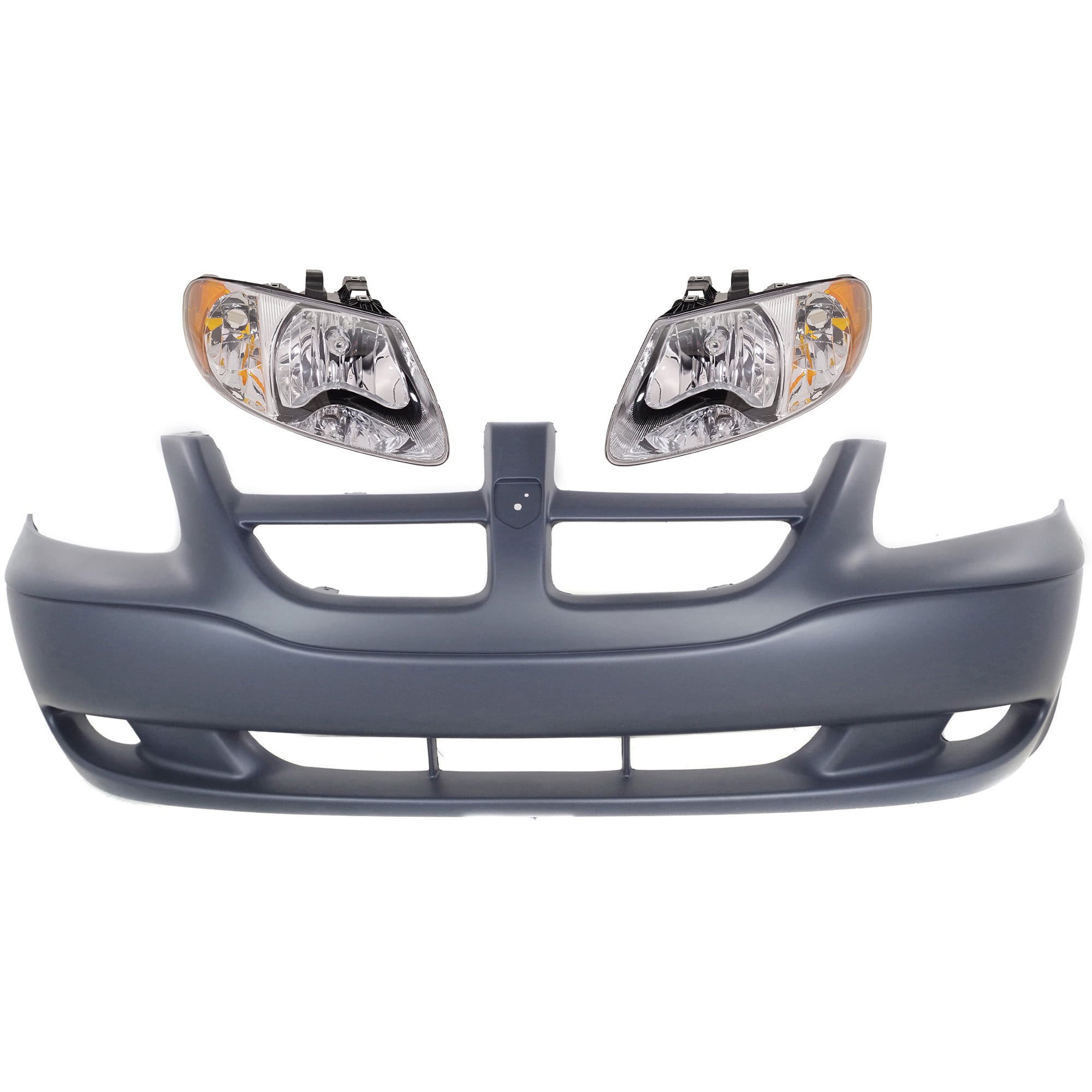 Front Bumper Cover Kit for 2001-2004 Dodge Caravan, 3-Piece with Headlights, Replacement