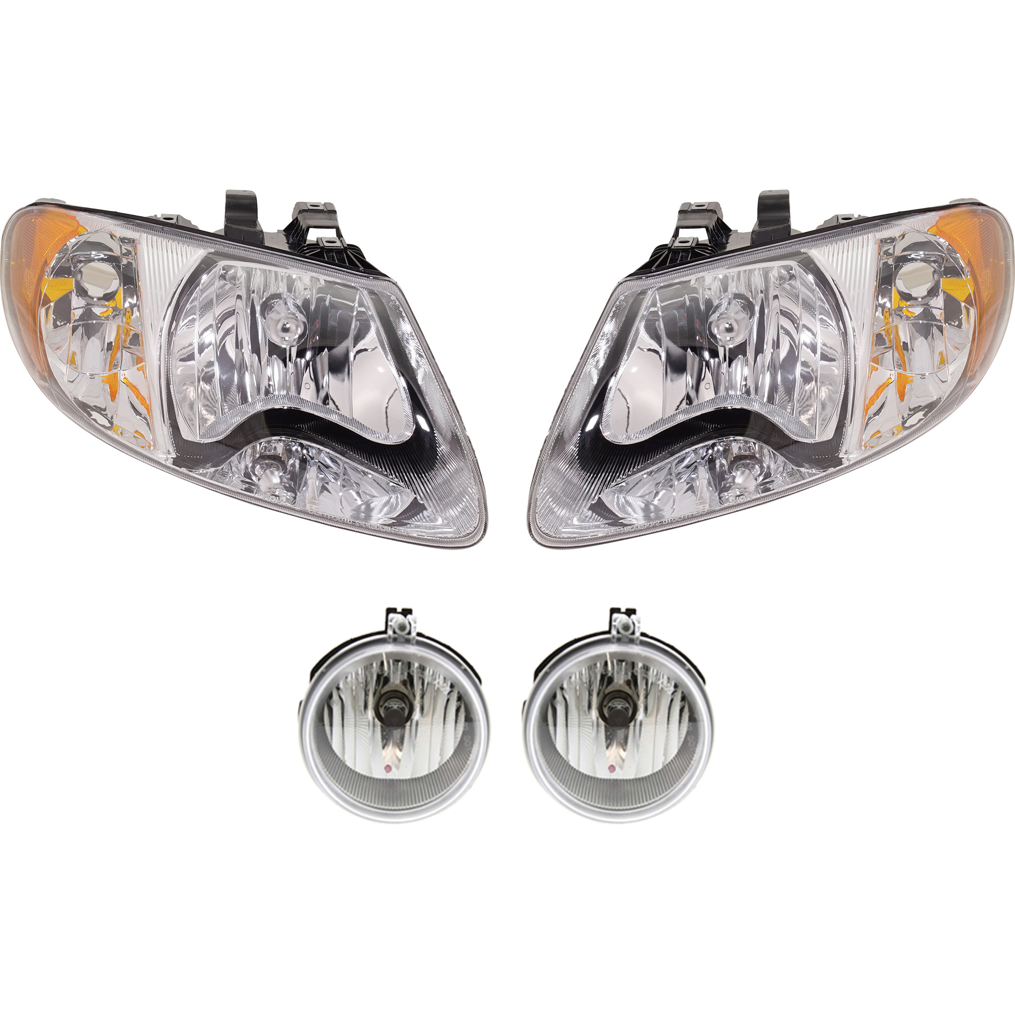 Headlight Kit for 2005-2007 Chrysler Caravan/Town & Country, Includes Right (Passenger) and Left (Driver) Headlights with Bulbs, 4-Piece Kit with Fog Lights, Replacement