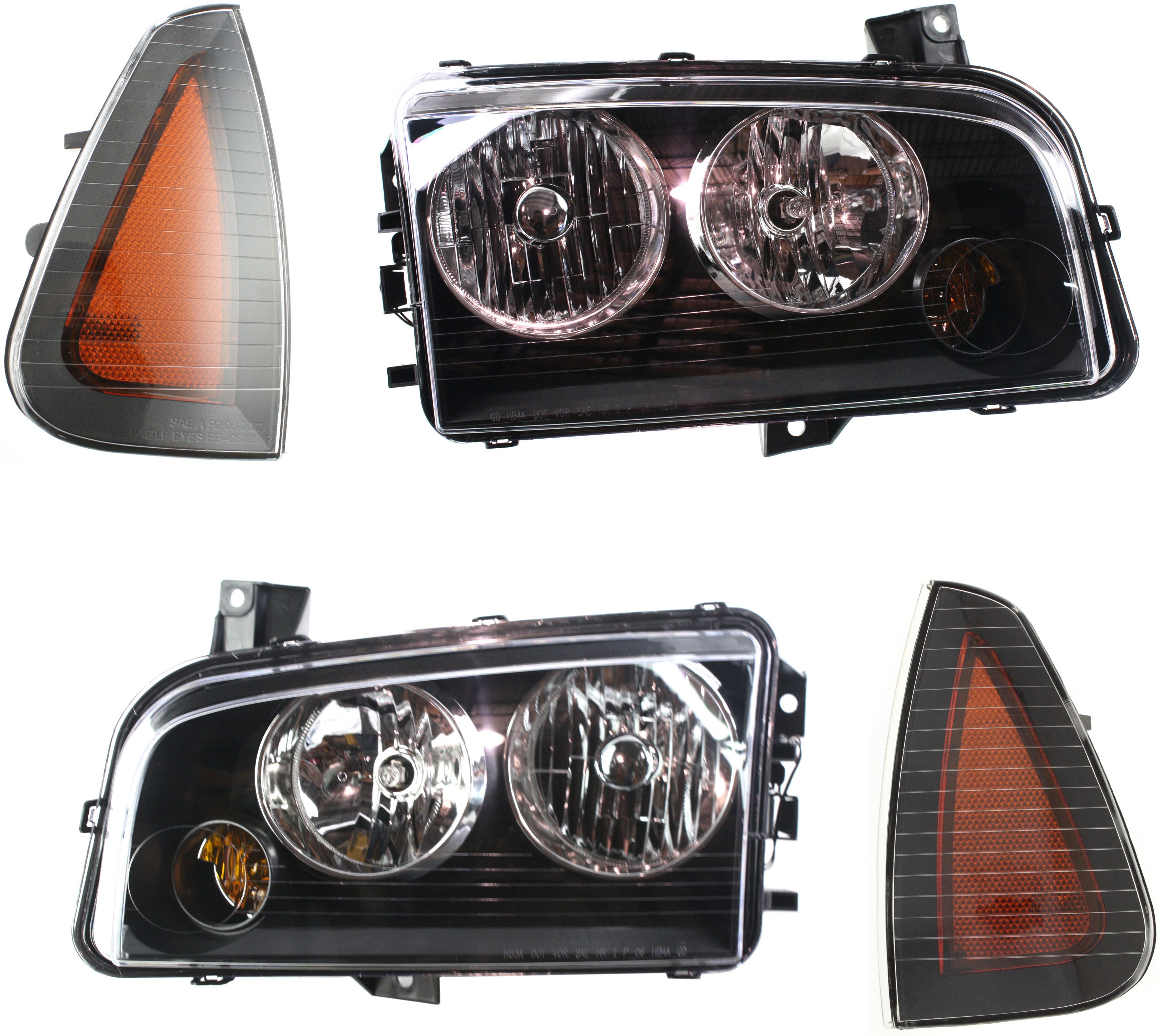 Headlight Kit for 2008-2010 Dodge Charger, Right (Passenger) and Left (Driver) Side, without Bulbs, 4-Piece Set, Includes Side Markers, Replacement