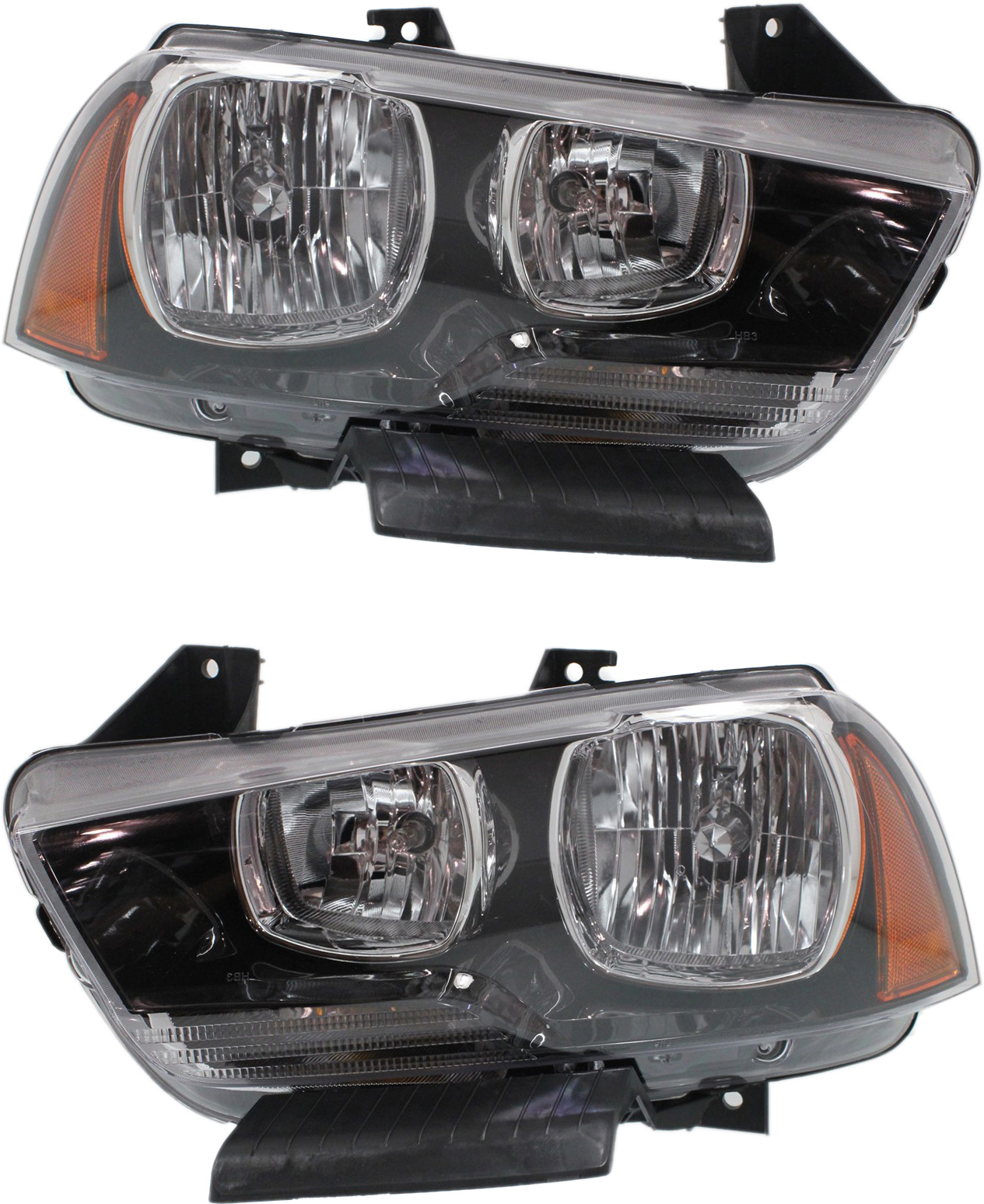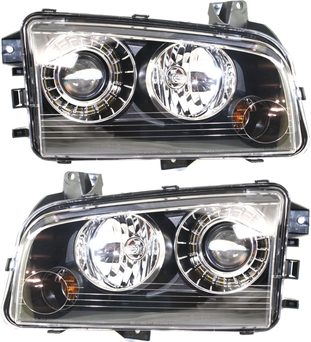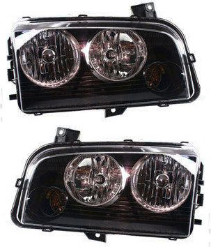 Headlight Assembly Pair/Set for Dodge Charger 2006-2007, Right (Passenger) and Left (Driver), Halogen, Black Interior, Pre 11-08-2006, Replacement