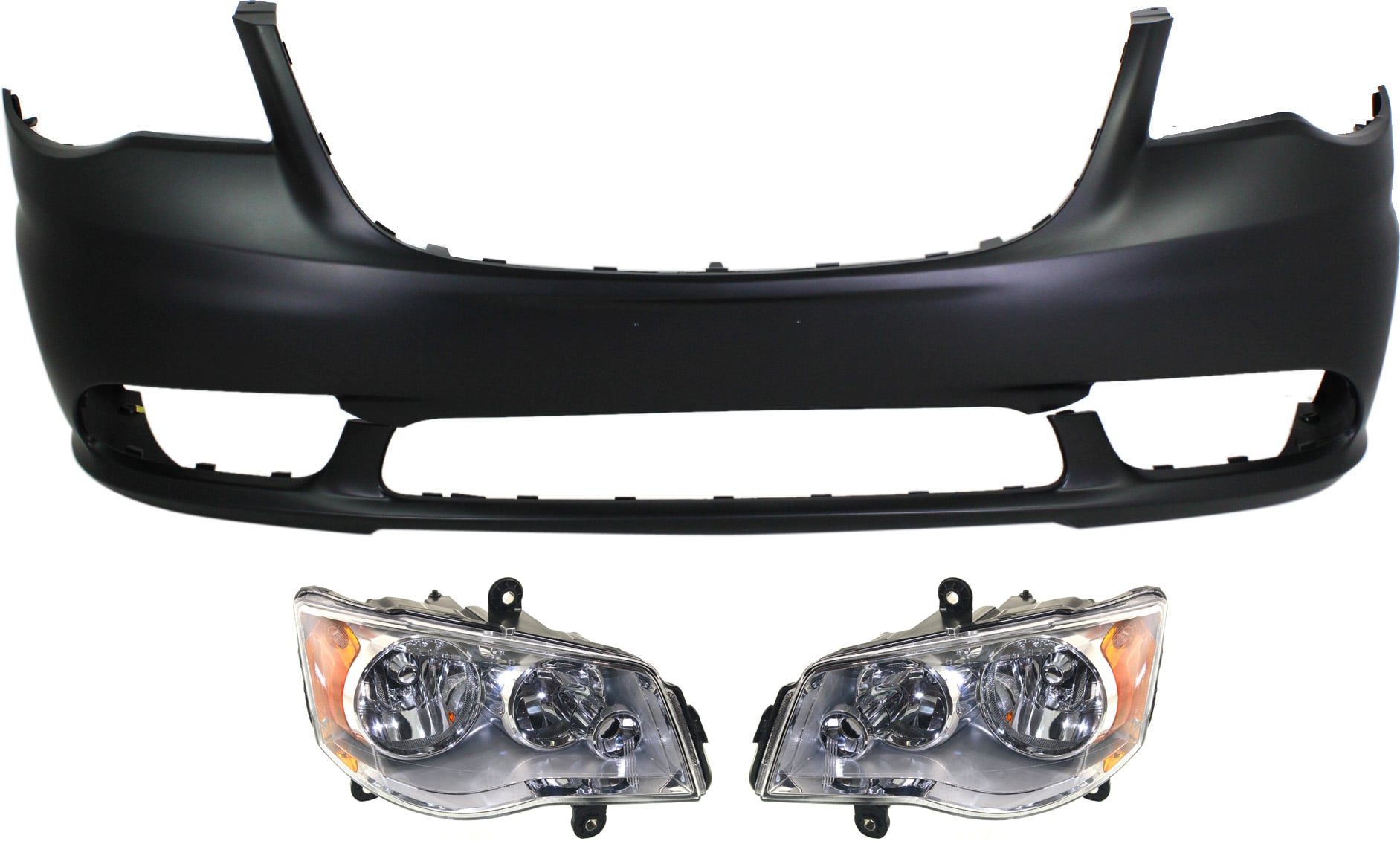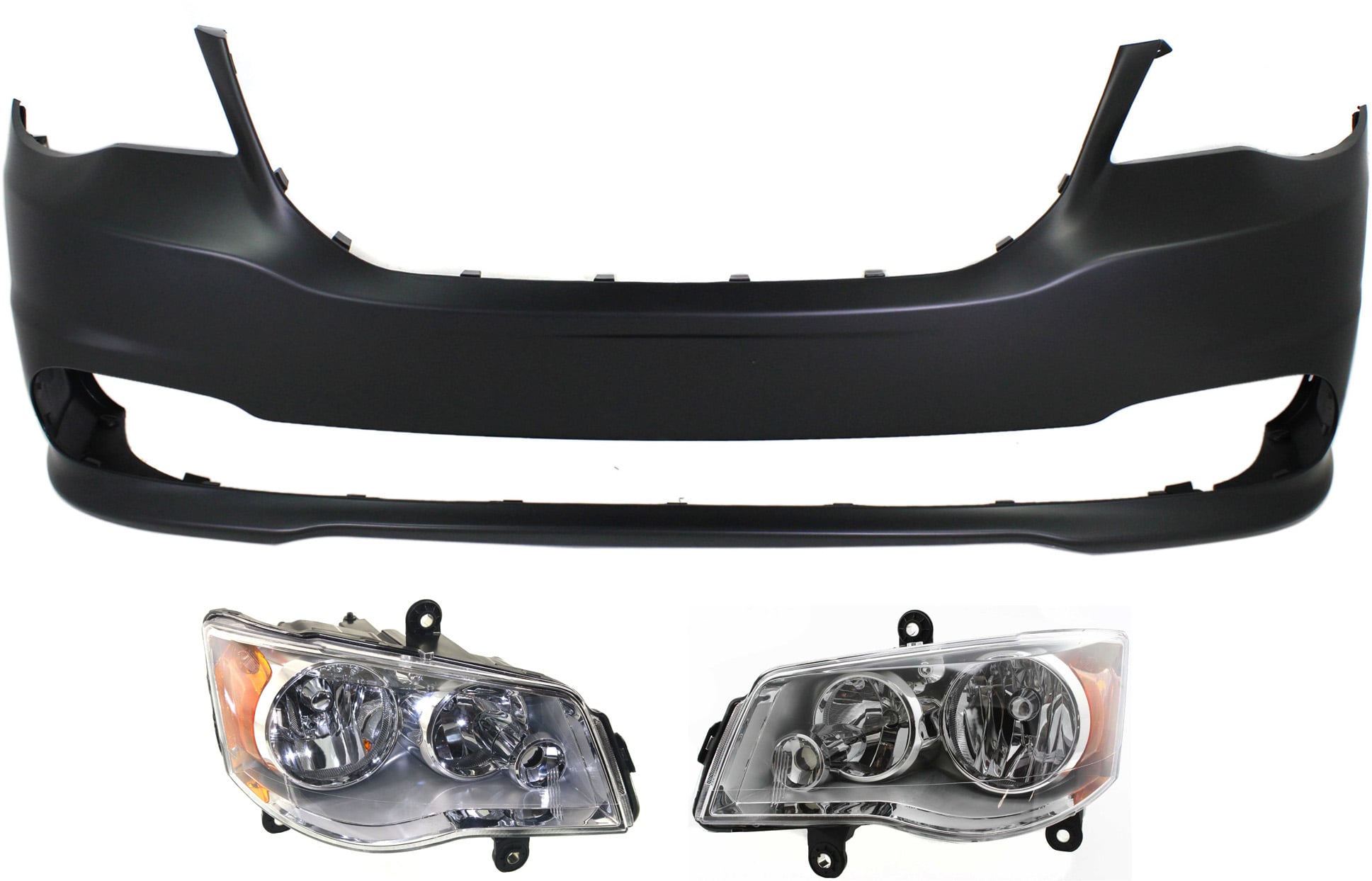 Headlight Kit for Chrysler Town & Country (2011-2016), Includes Right (Passenger) and Left (Driver) Headlights with Bulbs, 3-Piece Set with Bumper Cover Replacement