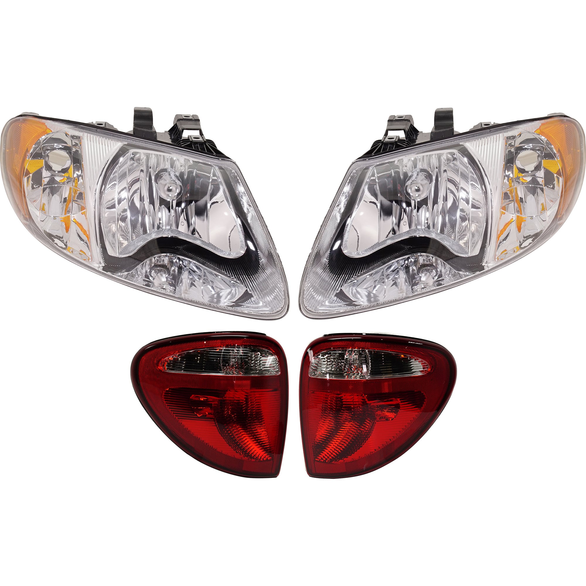 Headlight and Tail Light Kit for 2004-2007 Chrysler Caravan/Town & Country, Right (Passenger) & Left (Driver), with Bulbs, 4-Piece Set, Replacement