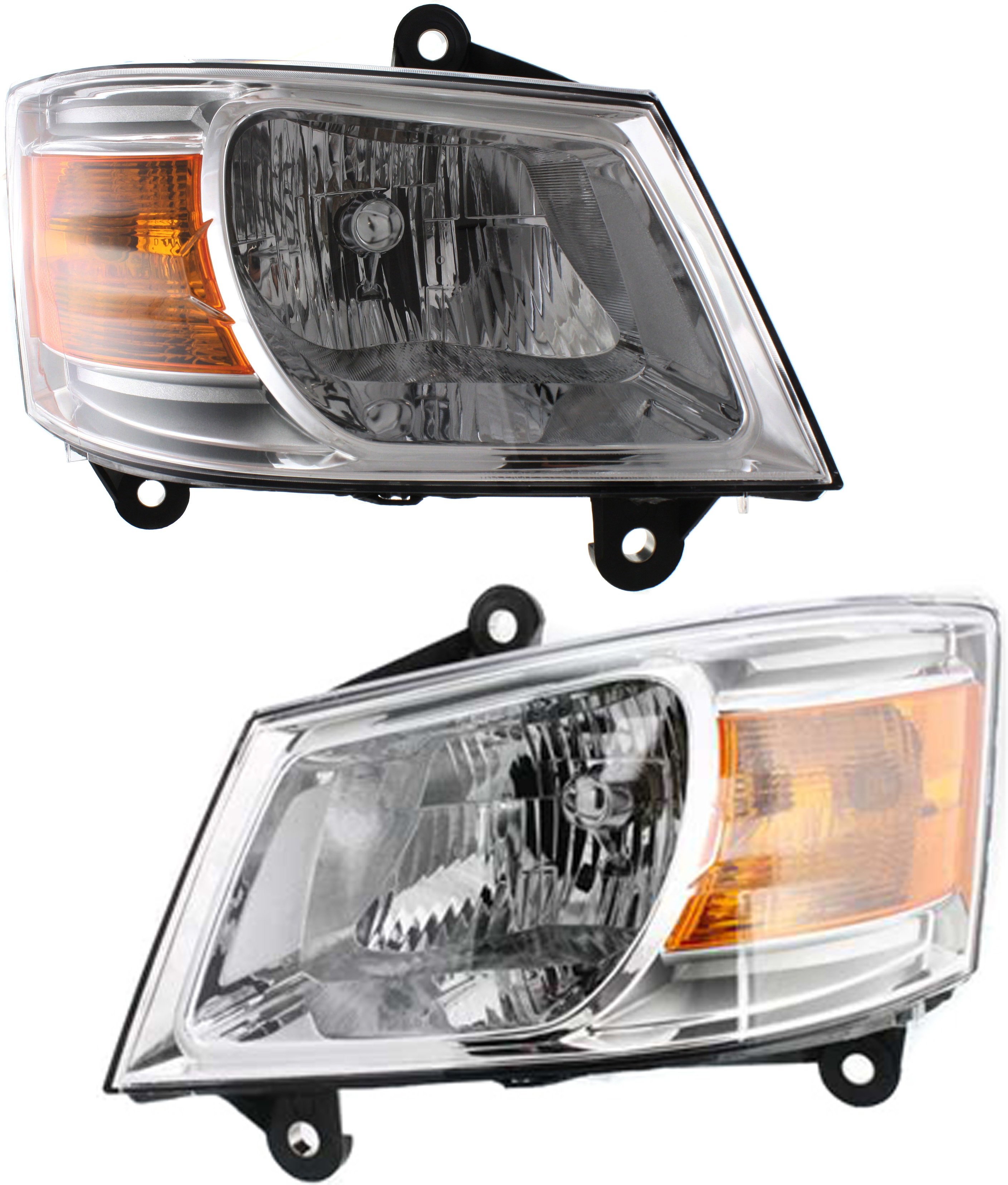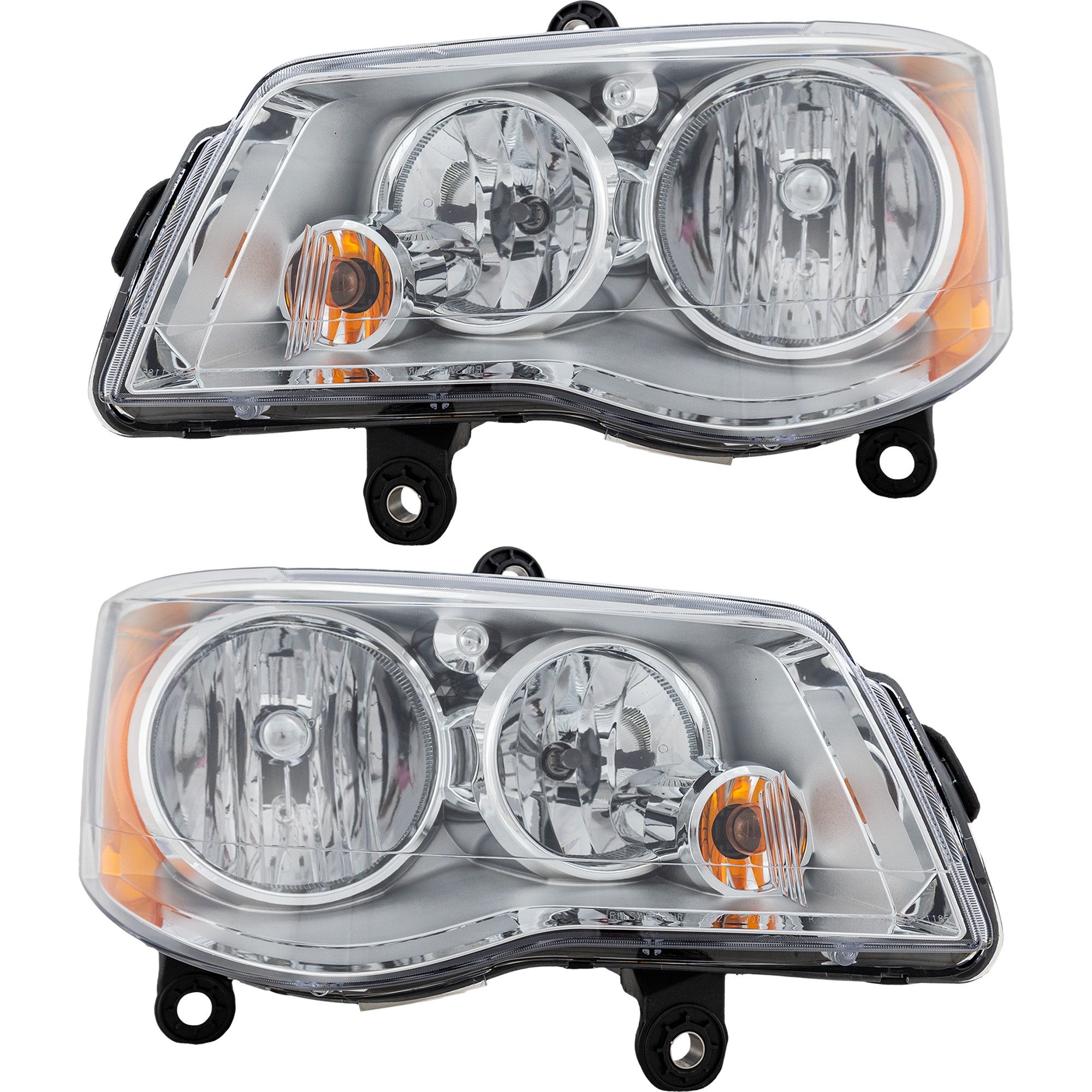 Headlight Assembly Pair/Set for Dodge Grand Caravan (2011-2020) and Chrysler Town and Country (2008-2016), Right (Passenger) and Left (Driver), Halogen, Chrome Interior, Replacement