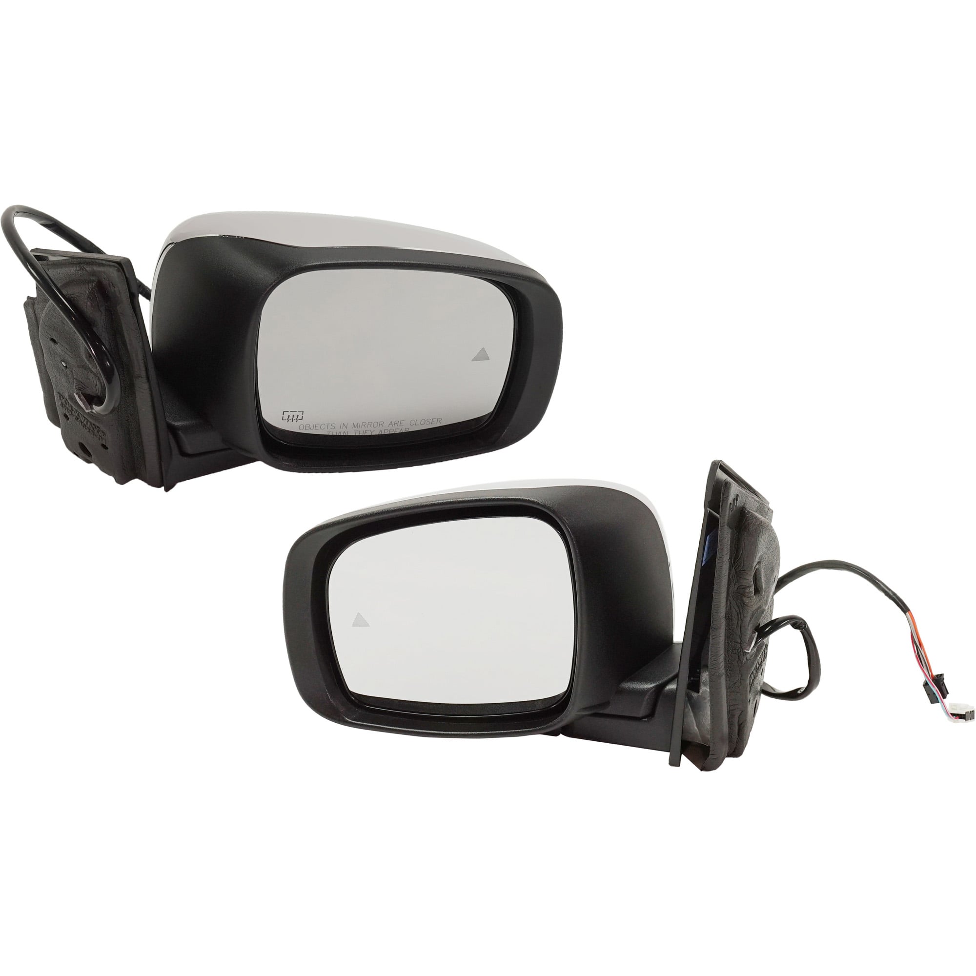 Replacement Mirror Pair/Set for 2009-2016 Chrysler Grand Caravan/Town & Country, Right (Passenger) and Left (Driver), Power, Manual Folding, Heated, Chrome, without Memory, with Signal Light and Blind Spot Detection, without Side Object Sensor.