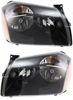 Headlight Assembly Pair/Set for Dodge Magnum 2005-2007, Right (Passenger) and Left (Driver), Halogen with Black Interior, Replacement