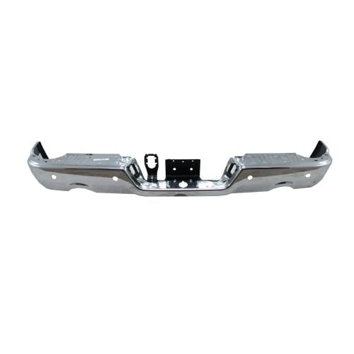 This bumper is Chrome and includes Parking Sensors and License Plate Lamps.