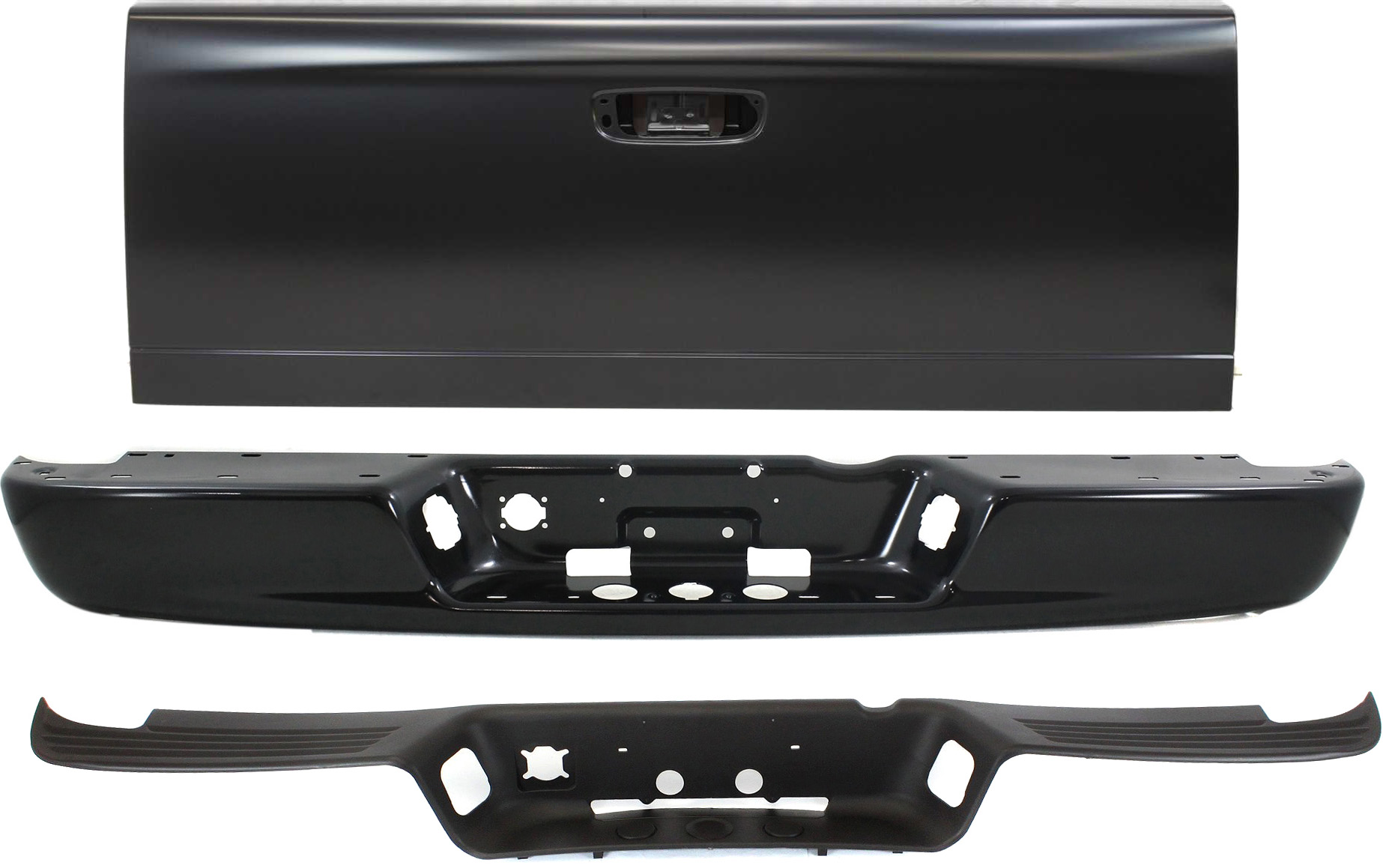 Step Bumper Face Bar Assembly Kit for 2002-2009 Dodge Full Size Pickup, Without Pad, With Pad Provision, Without Mounting Bracket, Includes Tailgate Replacement