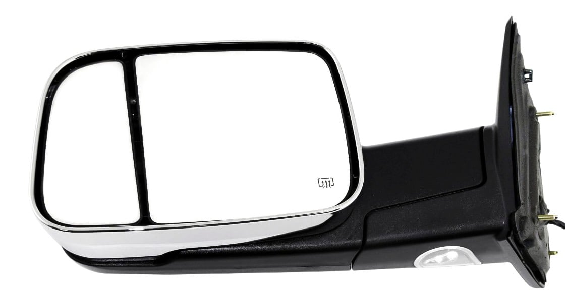 Towing Mirror Left (Driver) for Dodge Full Size Pickup 2010-2010 / Ram Full Size Pickup 2011-2011, Power, Manual Folding, Heated, Chrome, without Auto-Dimming, Blind Spot Detection, in-Housing Signal Light, with Memory, Replacement