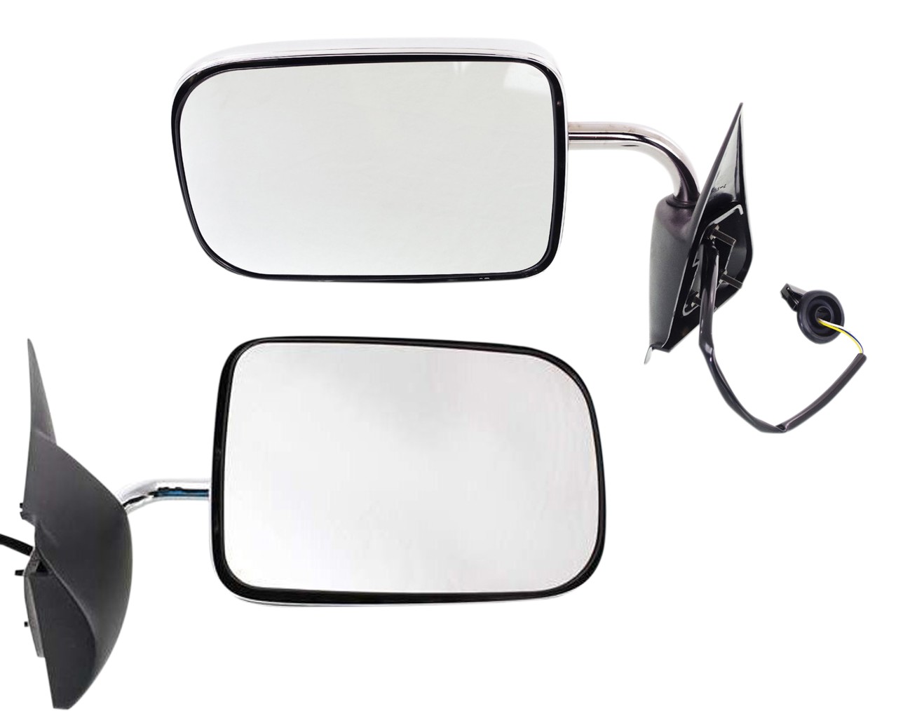 Auto Side Mirrors for Dodge RAM Full Size P/U 1994-1997, Right (Passenger) and Left (Driver), Pair/Set of 2, Power Control, Non-Heated, Manual Folding, Chrome, Non-Towing, with Convex and Flat Glass, Old Body Style Replacement