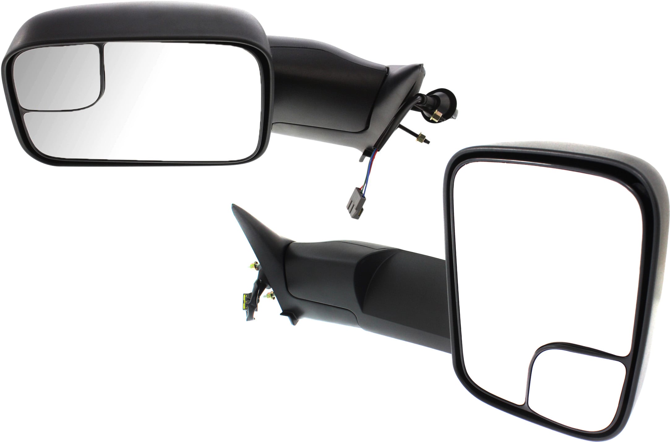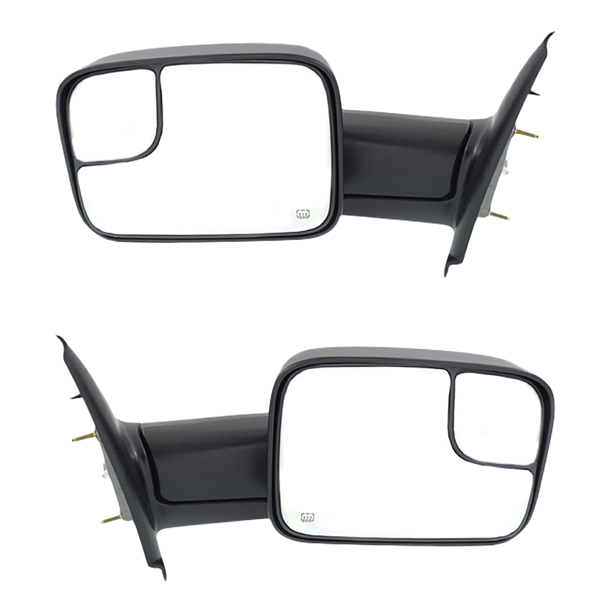 Towing Mirror Pair/Set for Dodge RAM 1500 2002-2008, RAM 2500/3500 2003-2009, Right (Passenger) and Left (Driver), Power, Manual Folding, Heated, Textured Replacement