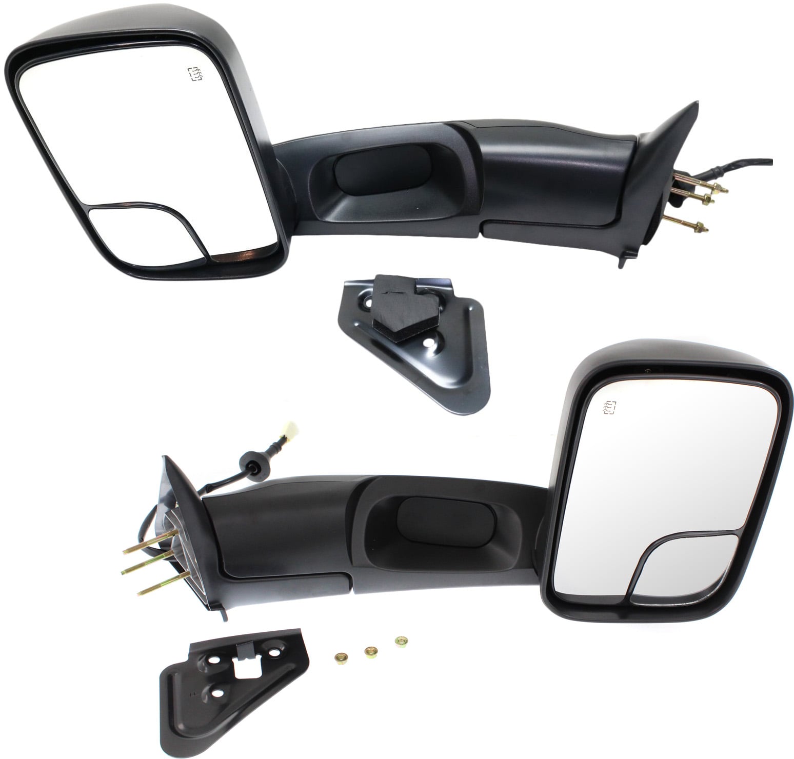 Towing Mirror Pair/Set for Dodge Ram 1500 Pickup 1998-2001, Ram 2500/3500 Pickup 1998-2002, Right (Passenger) & Left (Driver), Power, Manual Folding, Heated, Textured, with Bracket, Replacement