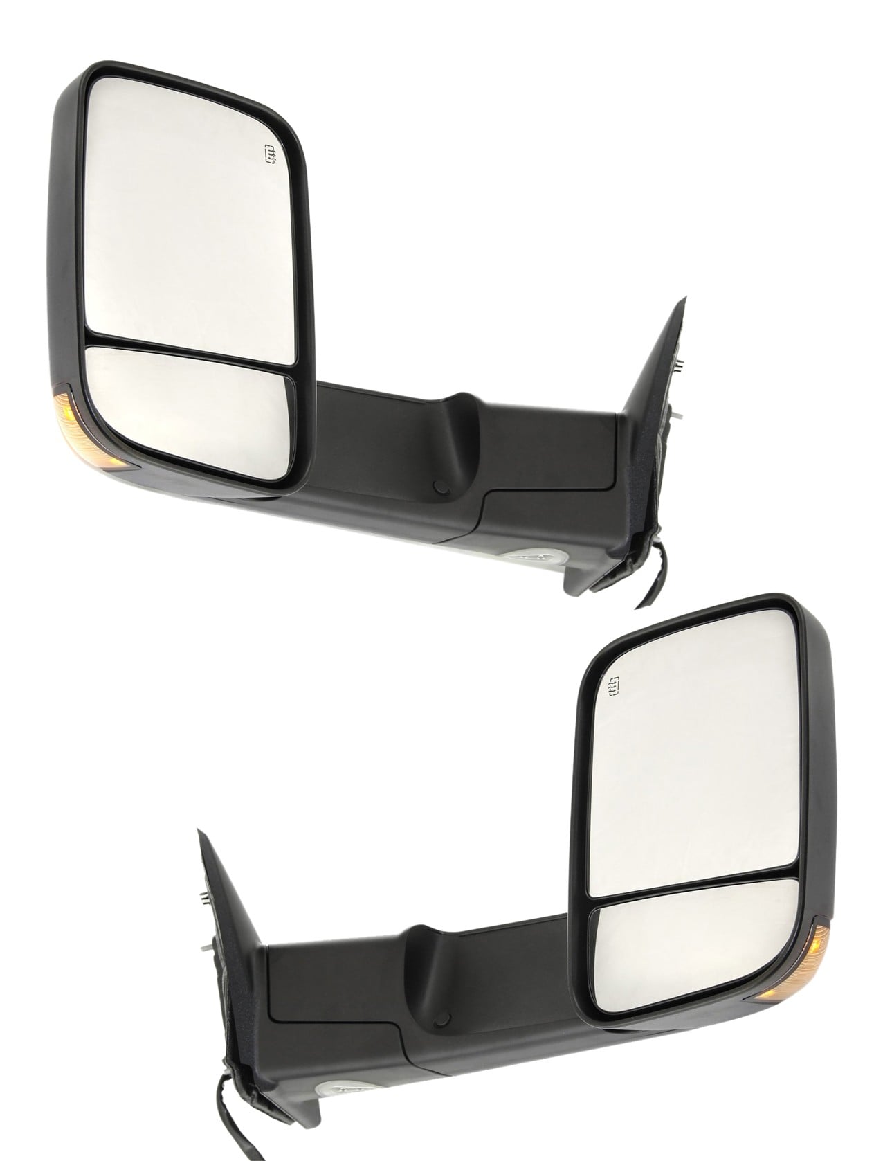 Towing Mirror Pair/Set for Dodge RAM1500/2500/3500 Pickup 2010-2012, Right (Passenger) and Left (Driver), Power, Manual Folding, Heated, Textured, with Signal Light, without Auto-Dimming, BSD, and Memory Replacement