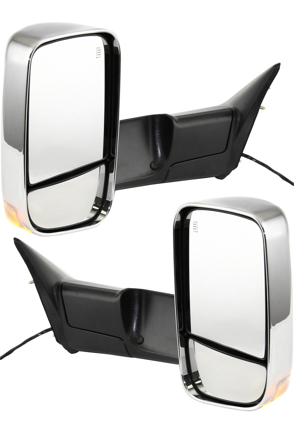 Towing Mirror Pair/Set for Dodge Full-Size Pickup 2010-2010 & Ram Full-Size Pickup 2011-2011, Right (Passenger) and Left (Driver), Power, Manual Folding, Heated, Chrome, without Auto-Dimming, with Blind Spot Detection and In-Housing Signal Light, includes Memory Feature, Replacement