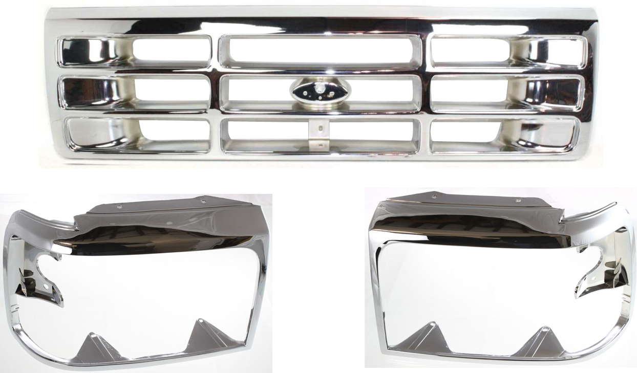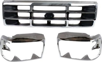 3-Piece Grille Kit with Headlight Doors for 1992-1996 Ford Bronco, 1992-1997 F-Series Replacement Models: for F-150, F-250, F-350, F-450.