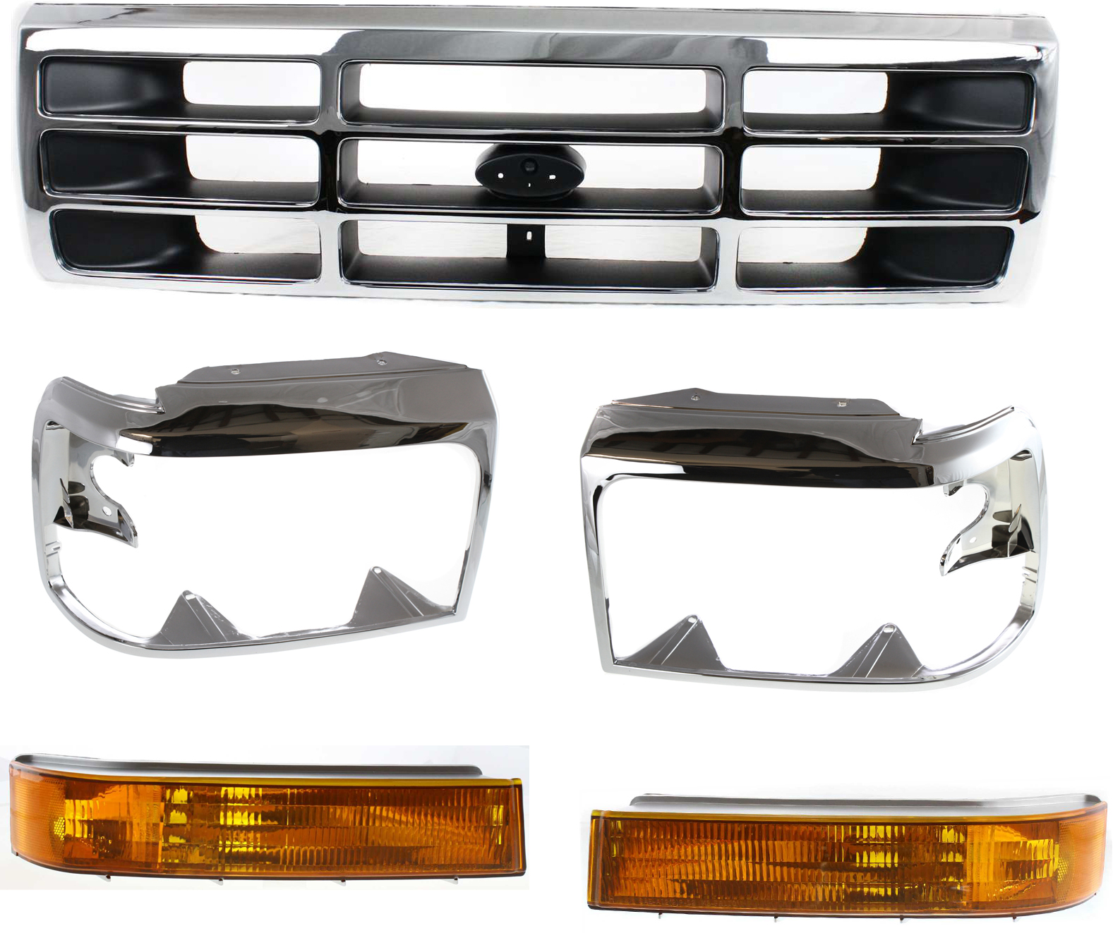 5-Piece Grille Kit for Ford F-Series 1992-1997, Including Headlight Doors and Turn Signal Lights, Replacement Note: Fits F-150, F-250, F-350 models.