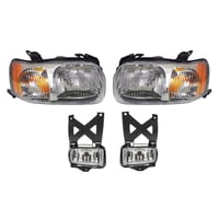 Headlight Assembly Kit for 2001-2004 Ford Escape, Right (Passenger) and Left (Driver), Halogen, 4-Piece with Fog Lights, Replacement
