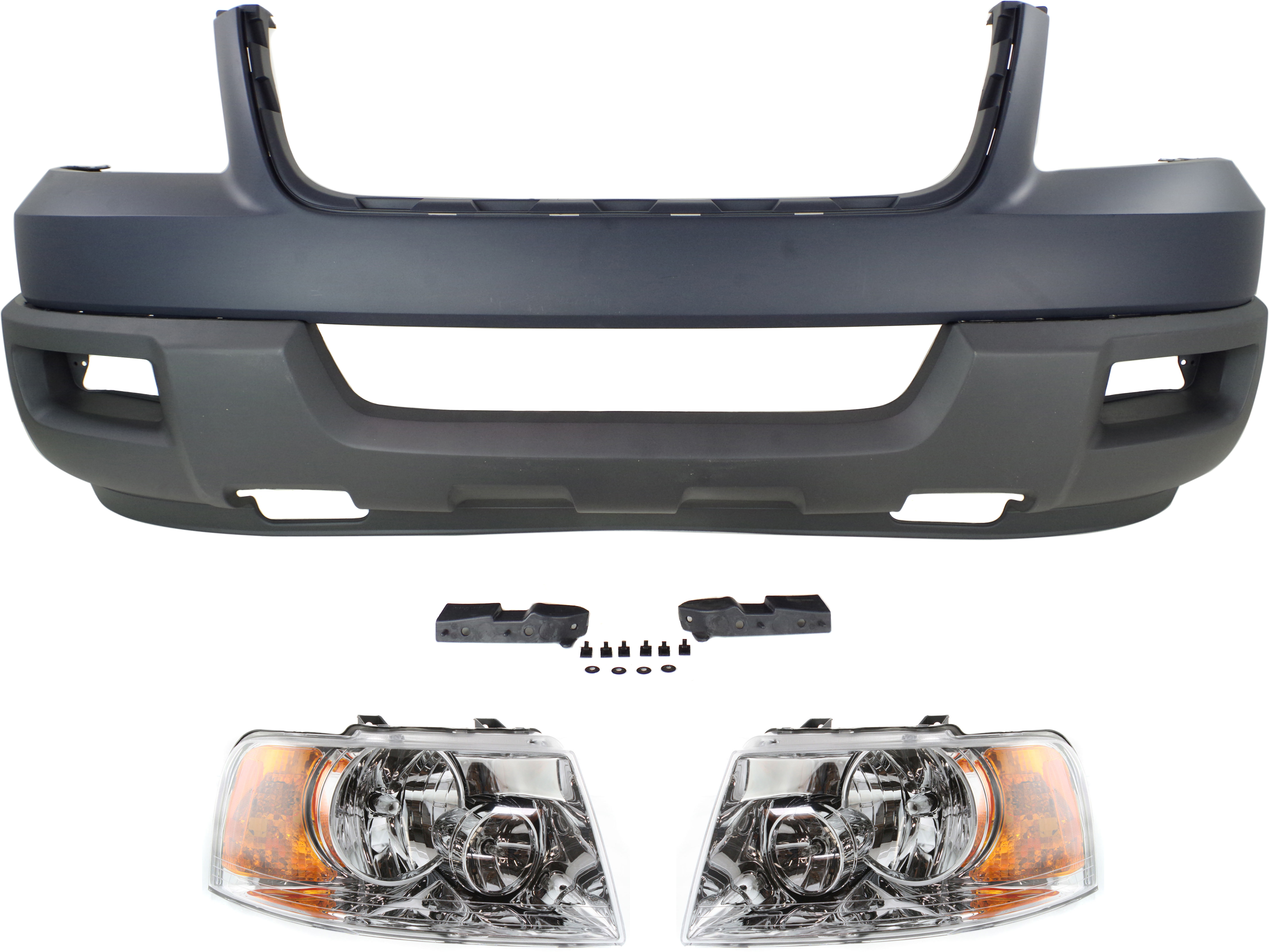 Front Bumper Cover Kit for 2003 Ford Expedition, 3-Piece with Headlights, Sport Utility Vehicle, Replacement