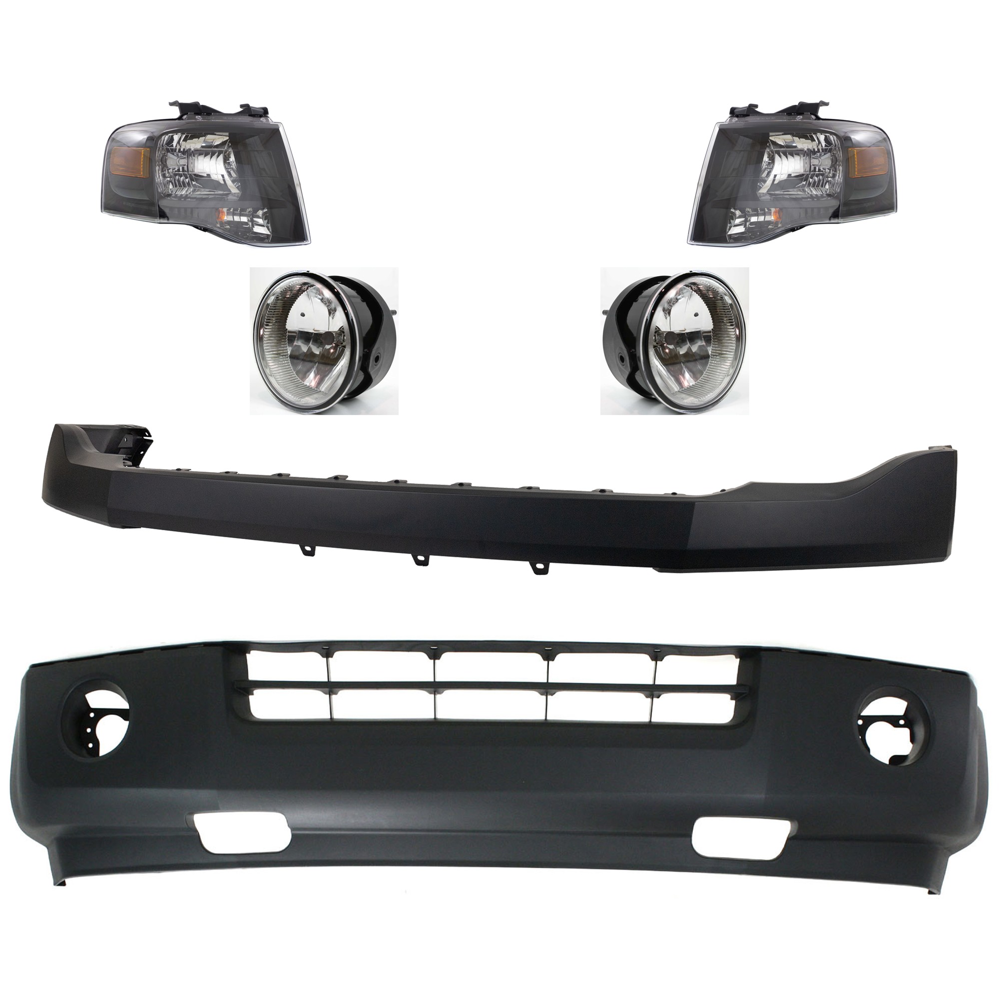 Front Bumper Cover for 2003 Ford Expedition, 3-Piece Kit with Headlights, Replacement