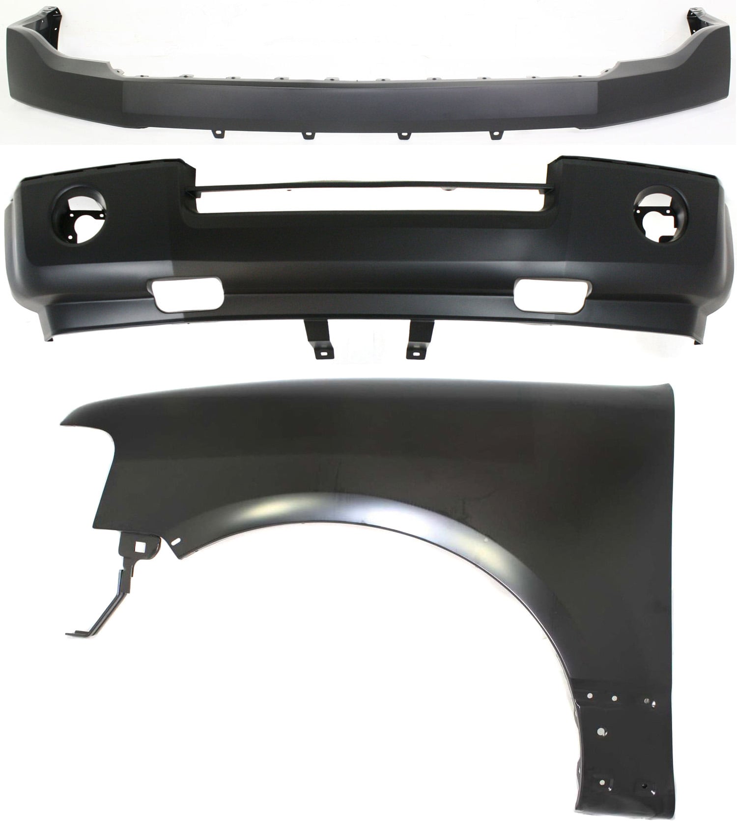 Front Bumper Cover Kit for 2003 Ford Expedition, 3-Piece with Fog Lights, Replacement