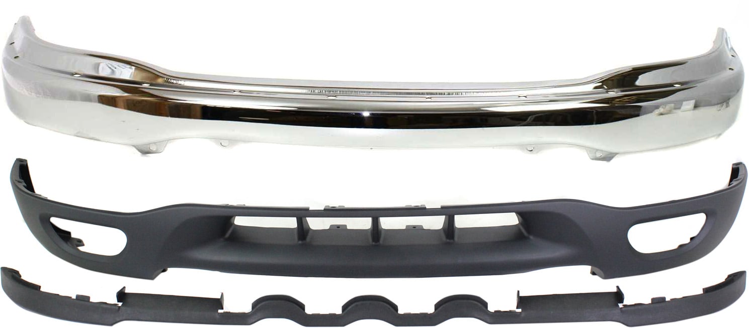 Front Bumper for Ford Expedition 1999-2002, F-Series 1999-2003, Chrome, 4-Piece Kit with Bumper Bracket and Valance, Excludes Lightning Model, Replacement