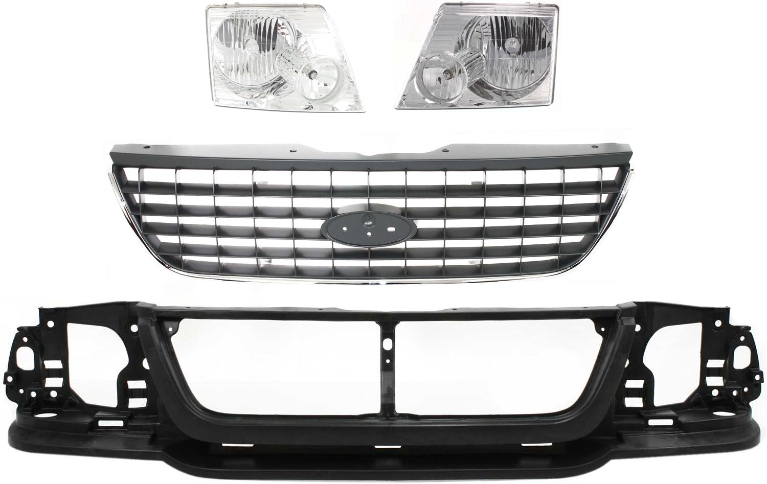 4-Piece Header Panel Kit for Ford Explorer 2002-2005, Includes Grille and Headlight, Excludes 2002-2003 Sport Model, Replacement