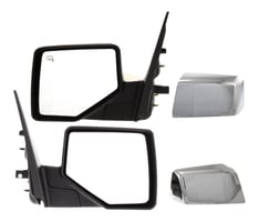 Mirror Pair/Set for 2006-2010 Ford Explorer, Right (Passenger) and Left (Driver), Power Adjust, Manual Folding, Heated, Chrome/Textured, Includes 2 Caps, with Puddle Light - Replacement Set