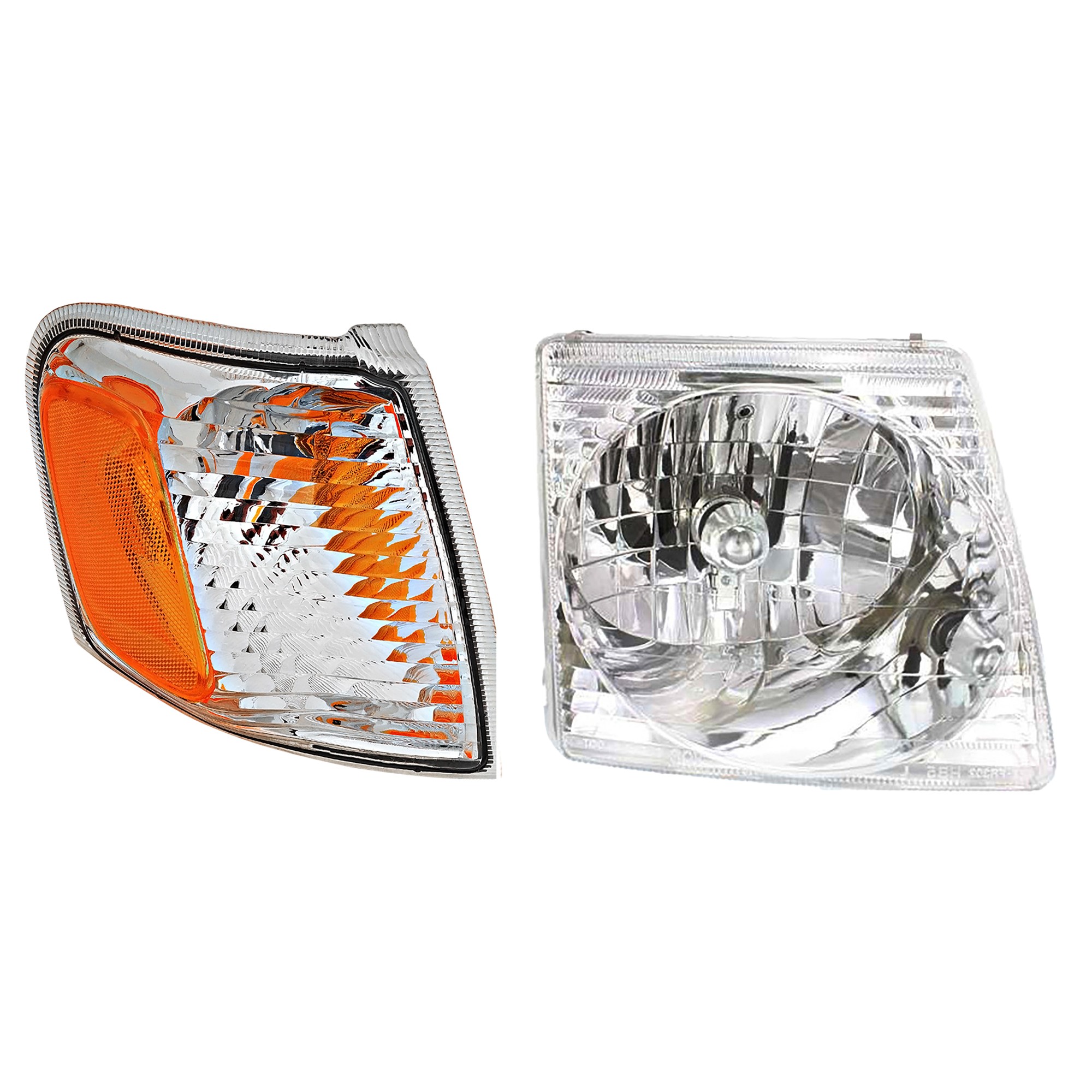 Headlight Assembly for Ford Explorer Sport 2001-2003 / Explorer Sport Trac 2001-2005, Left (Driver) Side, Halogen, 2-Piece Kit with Corner Light, Replacement