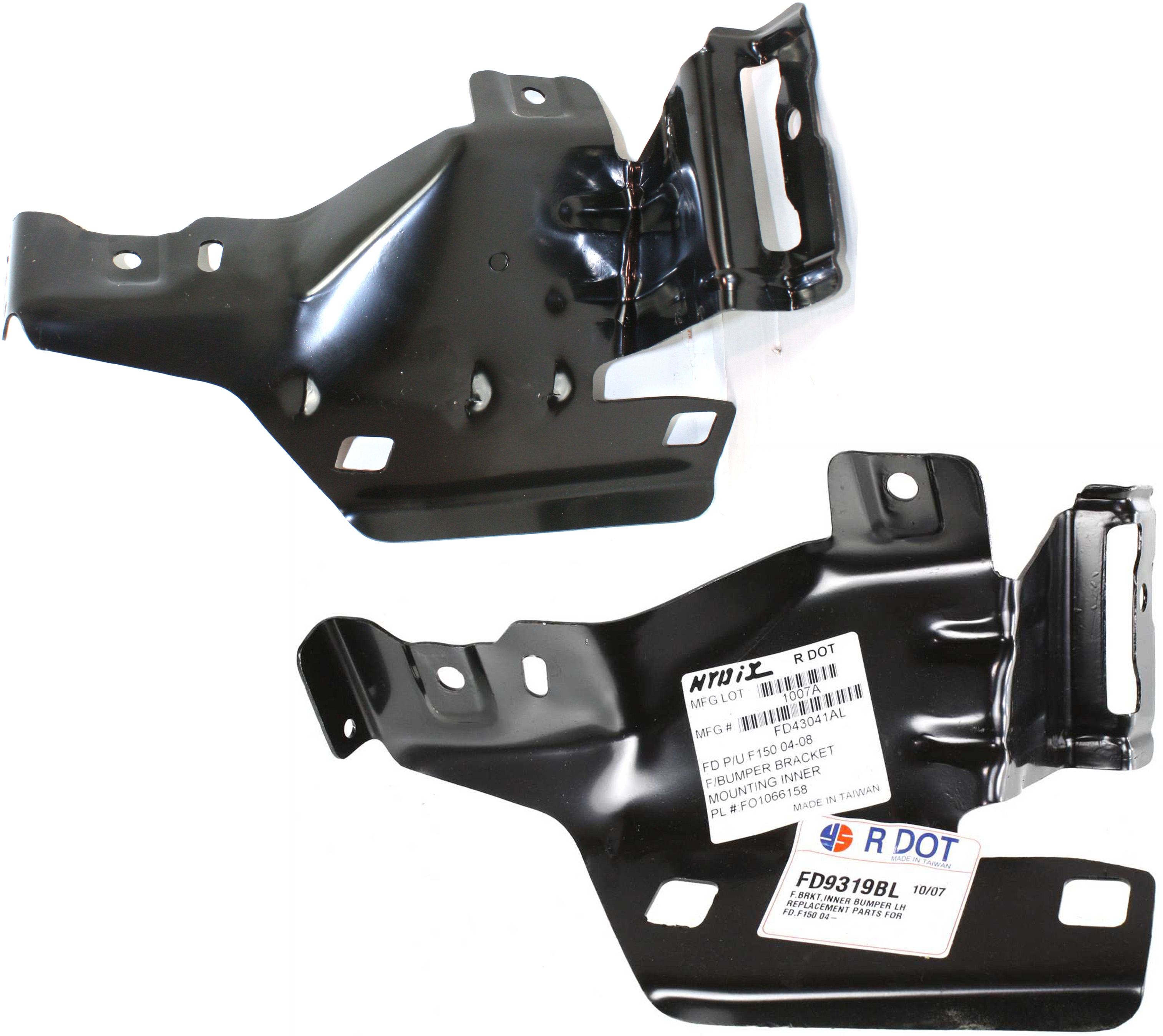 Front Bumper Bracket Pair/Set for Ford F-150 2006-2008, Right (Passenger) and Left (Driver), Mounting Plate, Steel, Replacement