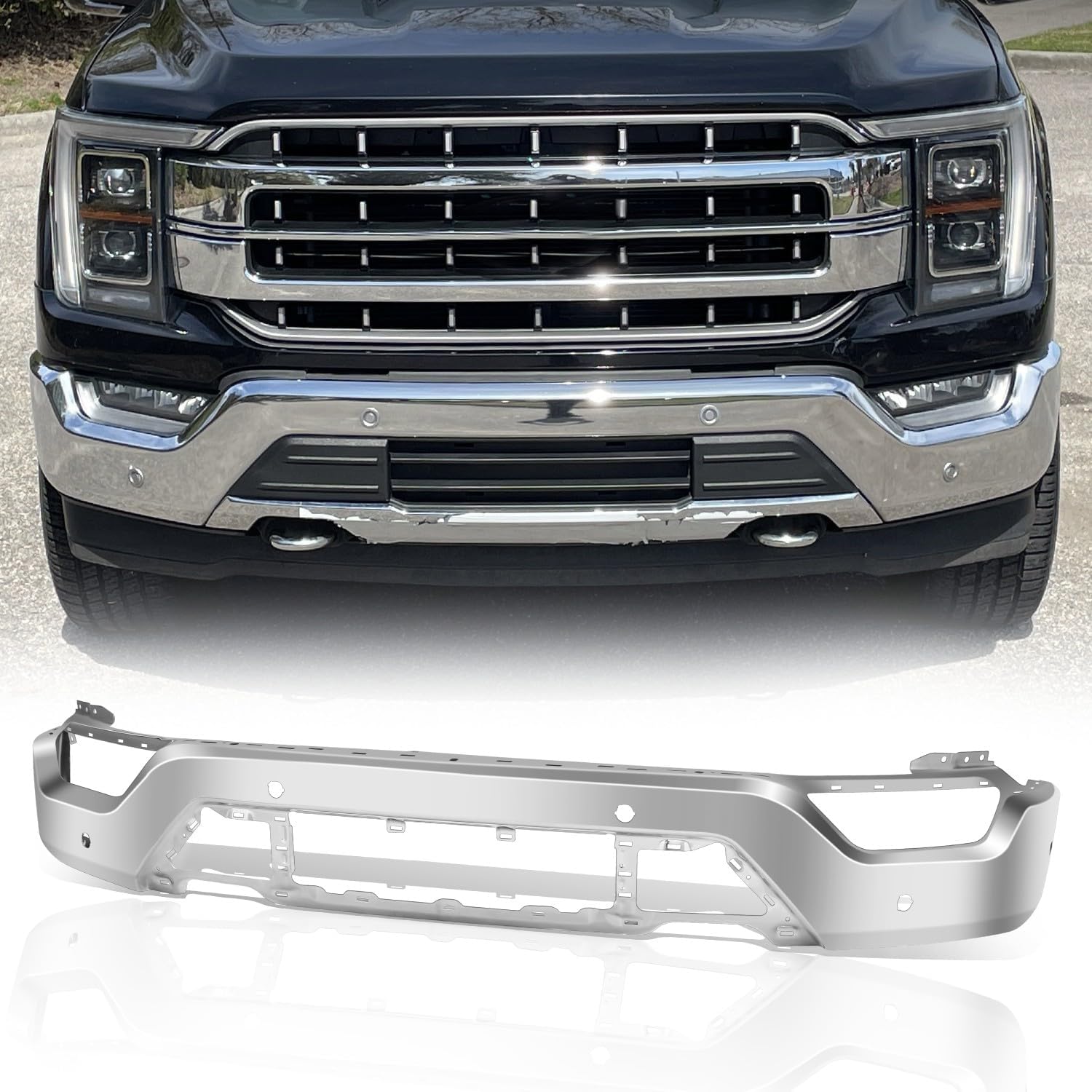 It has a Chrome Finish and includes Fog Light Holes.