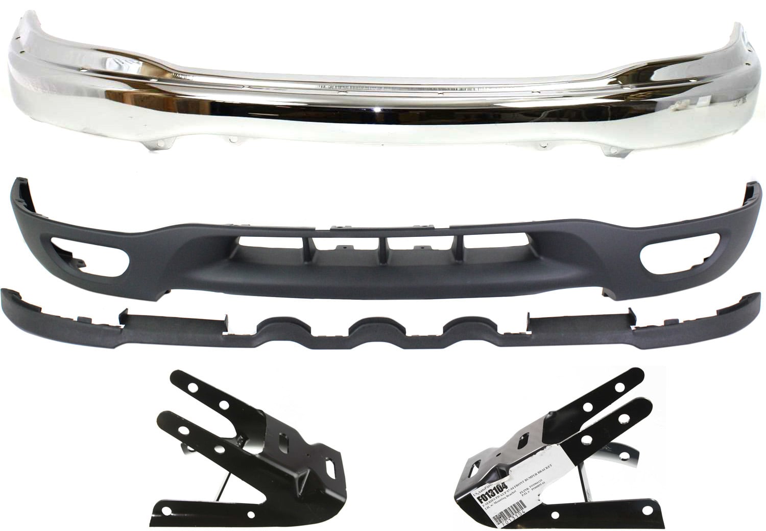 Front Bumper for Ford Expedition 1999-2002, F-Series 1999-2003, Chrome, 4-Piece Kit with Bumper Bracket and Valance, Excludes Lightning Model, Replacement