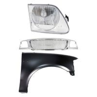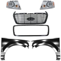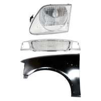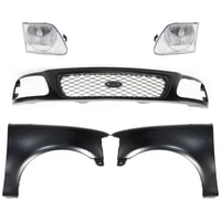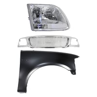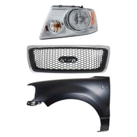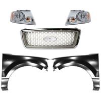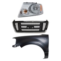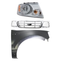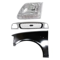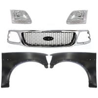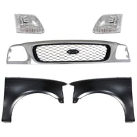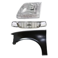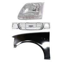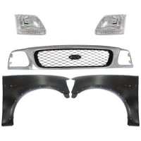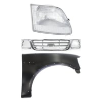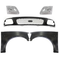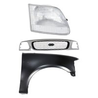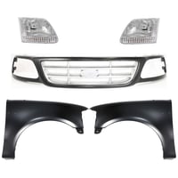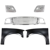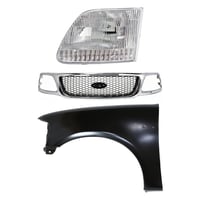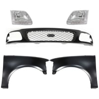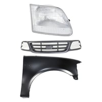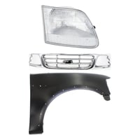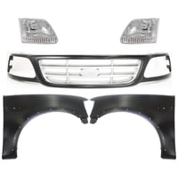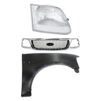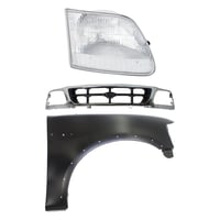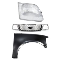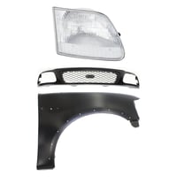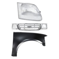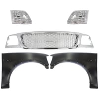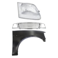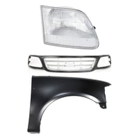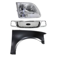 Grille Kit for Ford F-150/F-250 1997-1998, Paintable Shell and Insert, 3-Piece Kit with Fender and Headlight Replacement