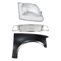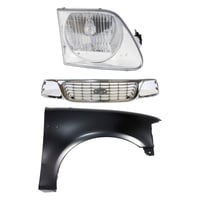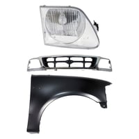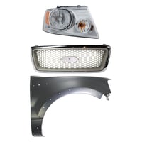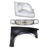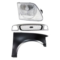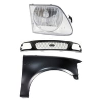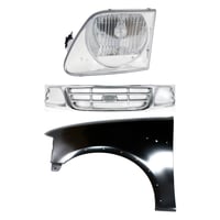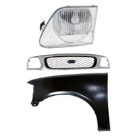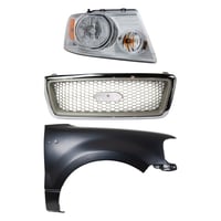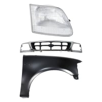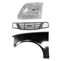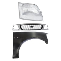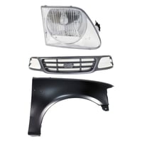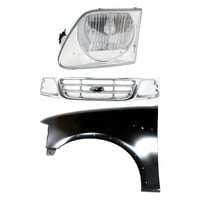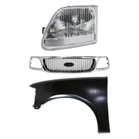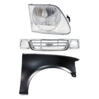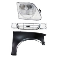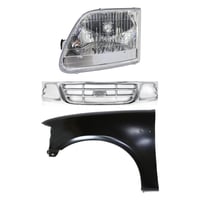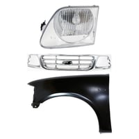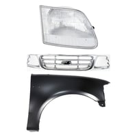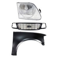 Grille Kit for Ford F-150/F-250 1997-1998, Chrome Shell with Gray Insert, 3-Piece Kit including Fender and Headlight, Replacement Auto Part