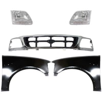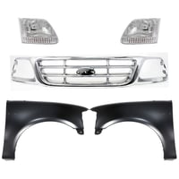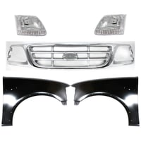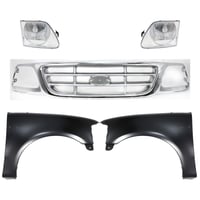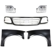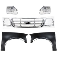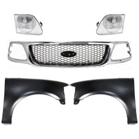 Grille Kit for Ford F-150/F-250 1997-1998, Chrome Shell with Gray Insert, 5-Piece Set, Includes Fenders and Headlights, Replacement