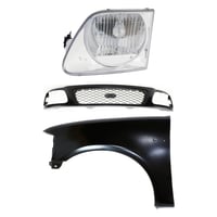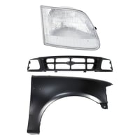 Grille Kit for Ford F-150/F-250 1997-1998, Paintable Shell and Insert, 3-Piece with Fender and Headlight, Replacement