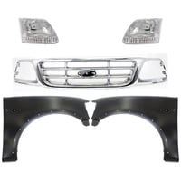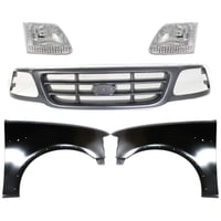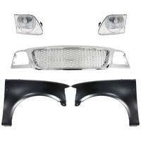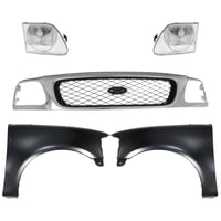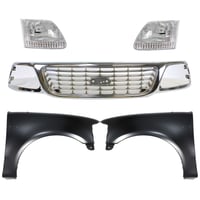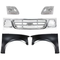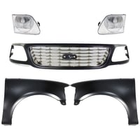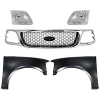 Grille Kit for Ford F-150/F-250 1997-1998, Chrome Shell with Gray Insert, 5-Piece Kit, Includes Fenders and Headlights, Replacement